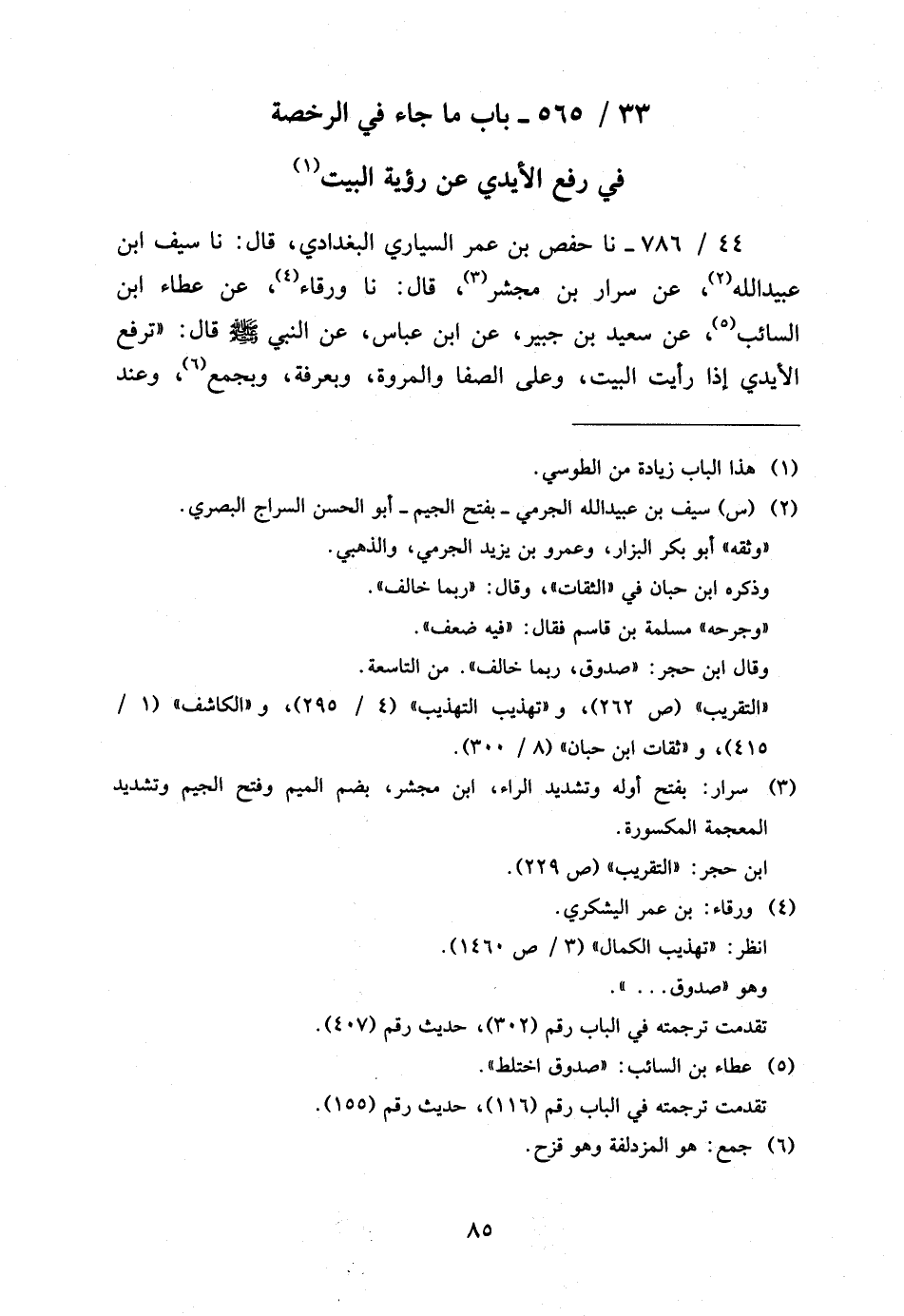 33 - / 565 بَابُ مَا جَاءَ فِي الرُّخْصَةِ فِي رَفْعِ الْأَيْدِي عَن رُؤْيَةِ الْبَيْتِ