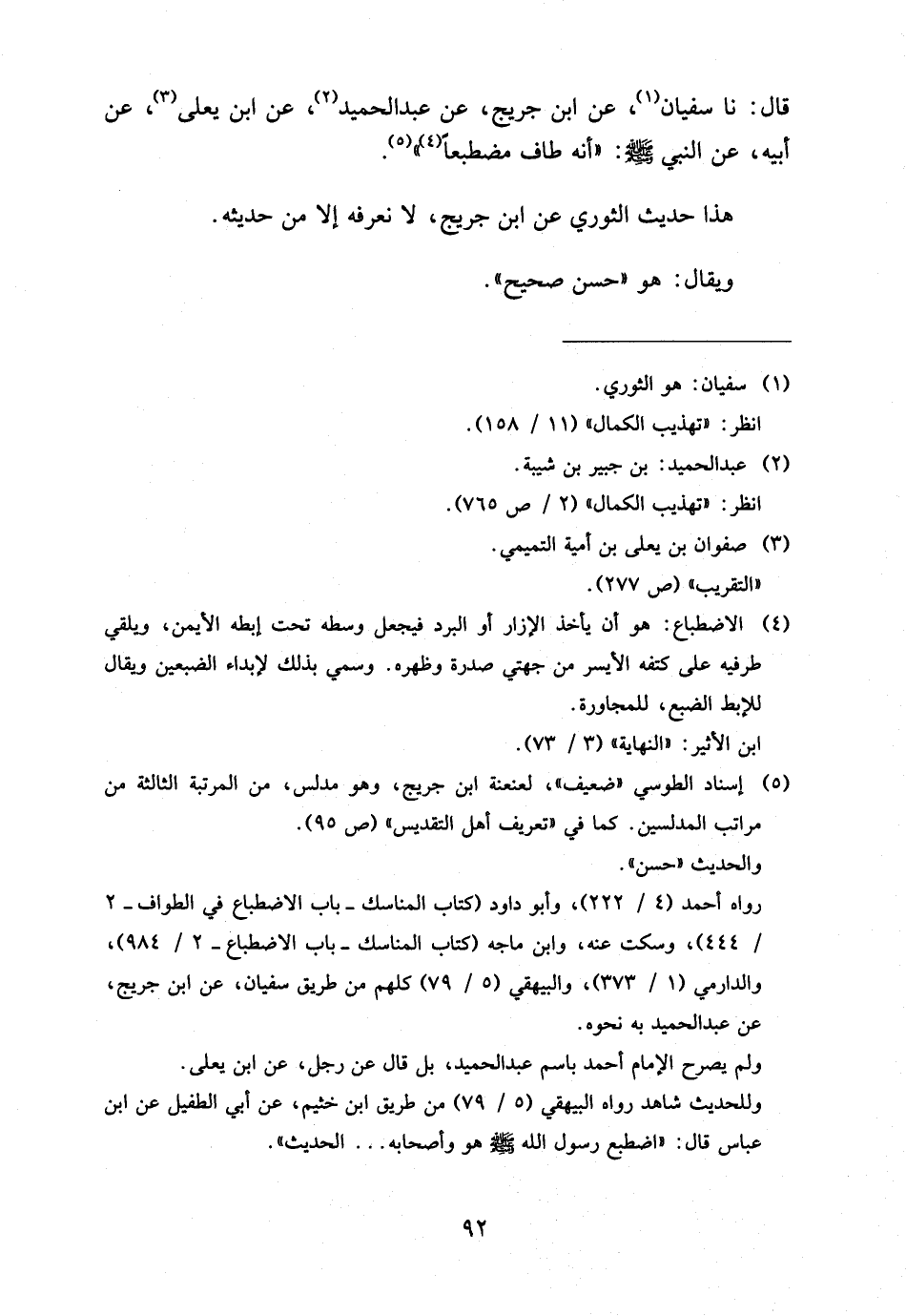 قَالَ نَا سُفْيَانُ عَنِ ابْنِ جُرَيْجٍ عَنْ عَبْدِ الْحَمِيدِ عَنِ ابْنِ يَعْلَى عَنْ أَبِيهِ عَنِ النَّبِيِّ صَلَّى اللَّهُ عَلَيْهِ وَسَلَّمَ أَنَّهُ طَافَ مُضْطَبِعًا