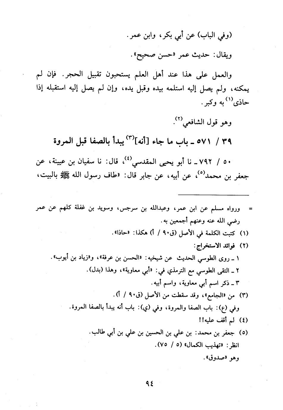 39 - / 571 بَابُ مَا جَاءَ أَنَّهُ يَبْدَأُ بِالصَّفَا قَبْلَ الْمَرْوَةِ