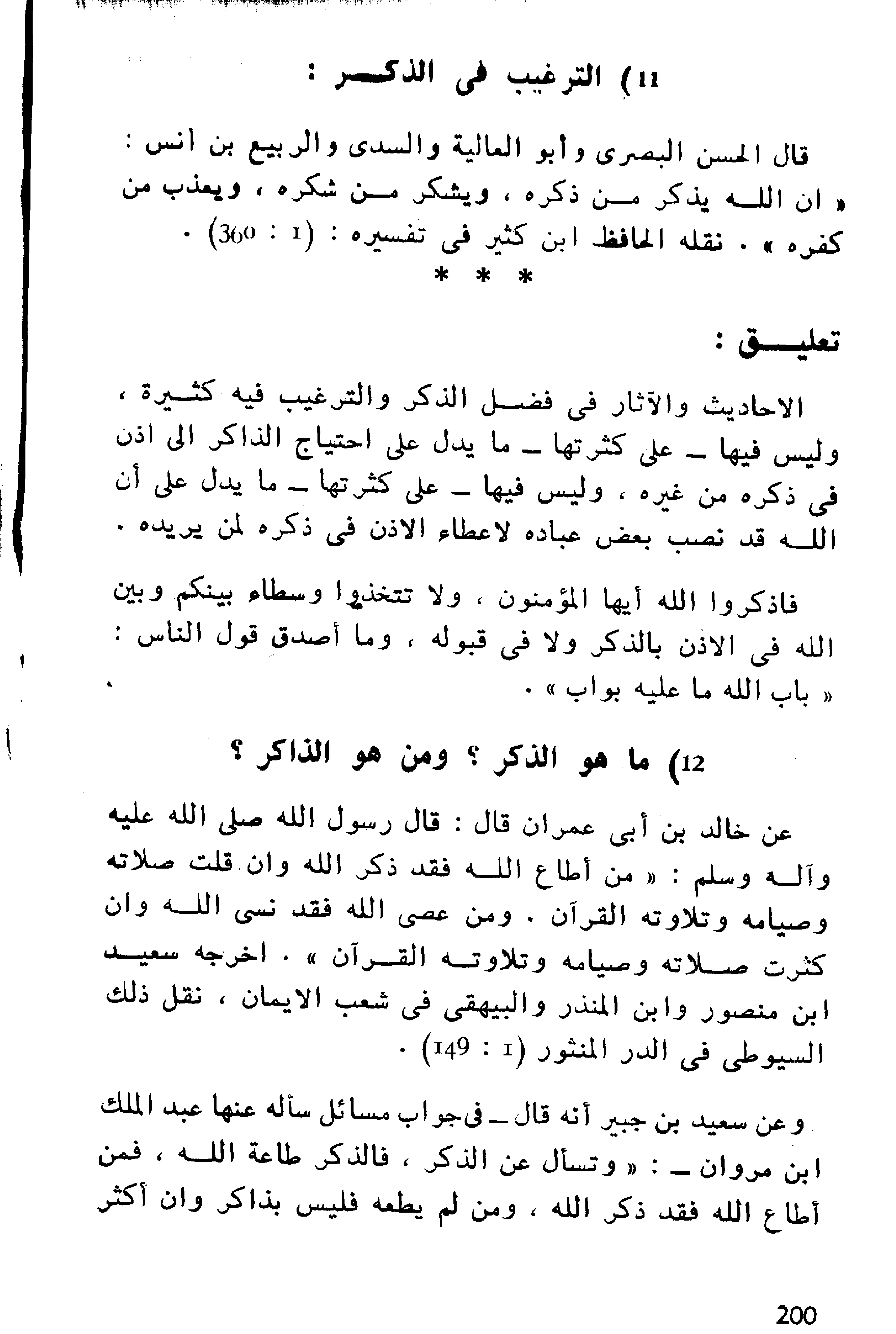 وعن ابن عمر- رضي الله عنه- أنه قيل له: أرأيت قاتل النفس وشارب الخمر والزانى يذكر الله وقد قال الله: {فَاذْكُرُونِي أَذْكُرْكُمْ} (اذا ذكر الله هذا ذكره الله بلعنته حتى يسكت). أخرجه عبد الله بن حميد وابن أبي حاتم نقله في الدر المنثور (1: 149).