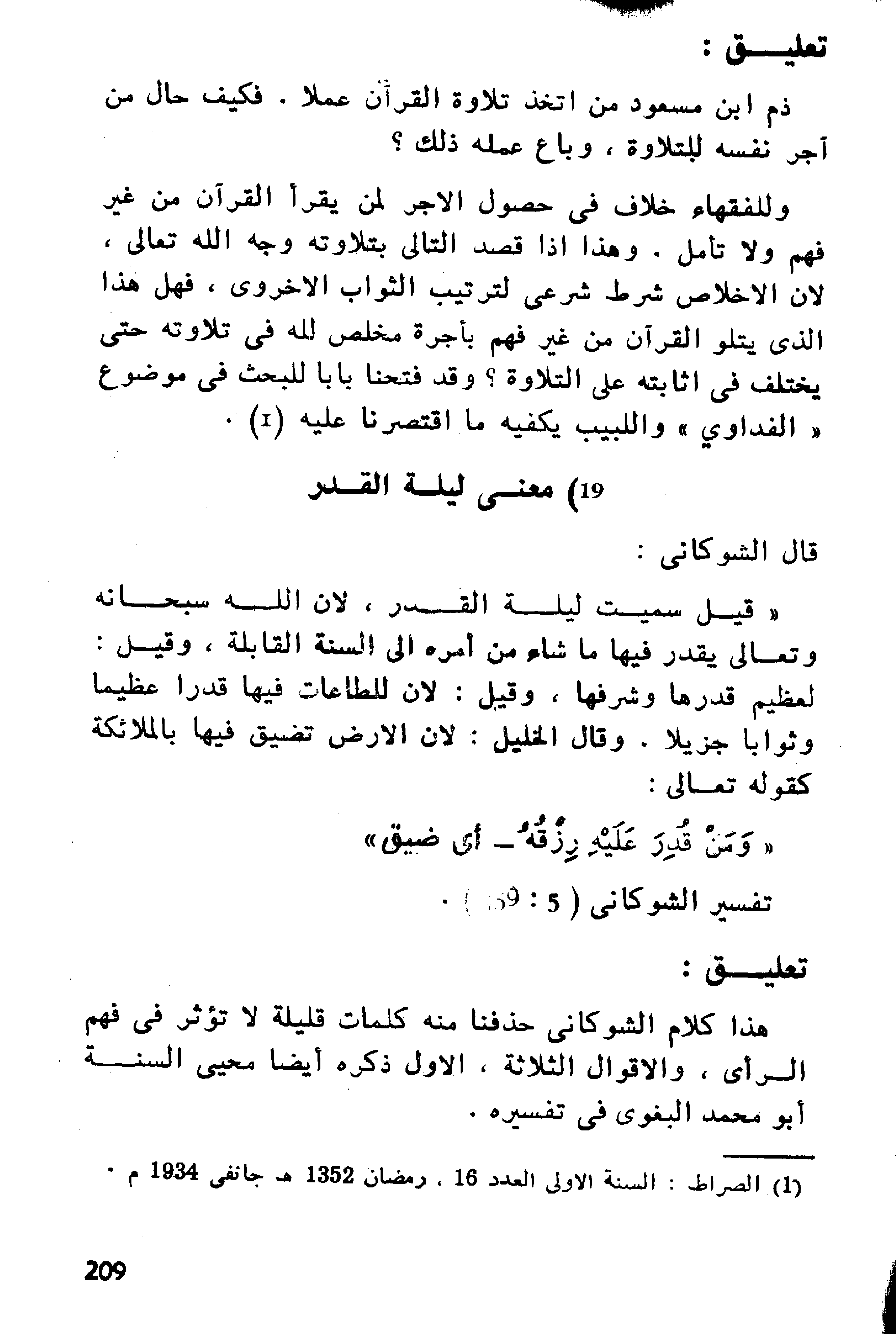 بين هذا الأثر- وفي معناه آثار كثيرة- أن خيرية ليلة القدر راجعة إلى تفضيل الطاعة فيها والعمل الصالح على غيرها من الليالى والأيام. وهذا يفيد أن المسلم الذي يتطلب ليلة القدر إنما يتطلبها ليعمل فيها صالحا ويجد في العبادة، فالمؤمن إنما يطلبها للدين لا للدنيا. وقد ثبت في الصحيحين عن أبي هريرة- رضي الله عنه- أن رسول الله- صلى الله عليه وآله وسلم- قال: "من قام ليلة القدر إيمانا واحتسابا غفر له ما تقدم من ذنبه".