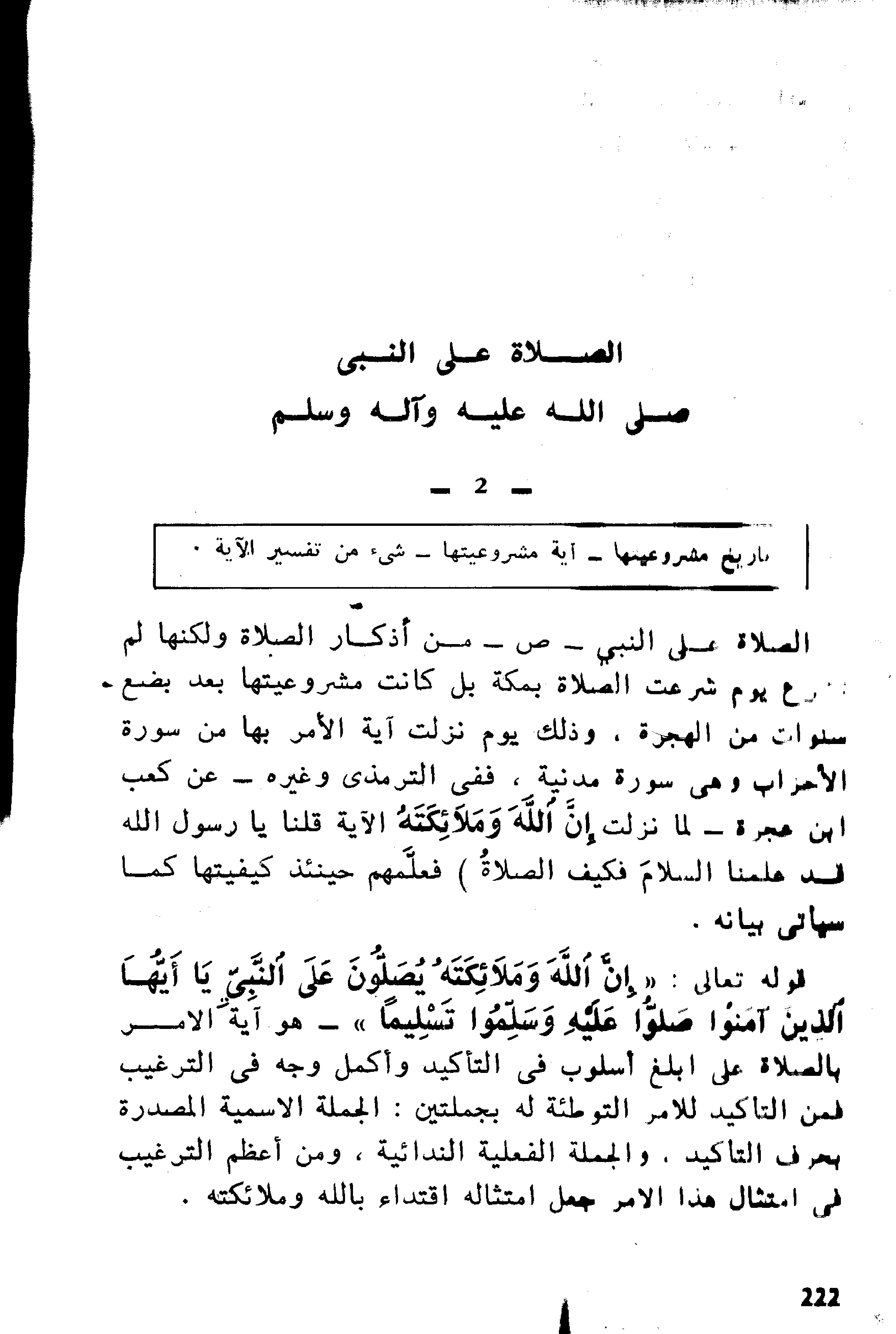 الثاني: - أنه بذلك التبليغ قد جلب للمؤمنين أعظم النفع وأكمل الخير وهو سعادة الإيمان في العاجل والآجل. فمن بعض حقه عليهم أن يقوموا- لتعظيمه وتكريمه- بالصلاة عليه. فتكون صلاتم عليه- وهي سبب أجر عظيم ونفع كبير لهم- كالجزاء لعظيم إحسانه، والاعتراف بجزيل جميله.