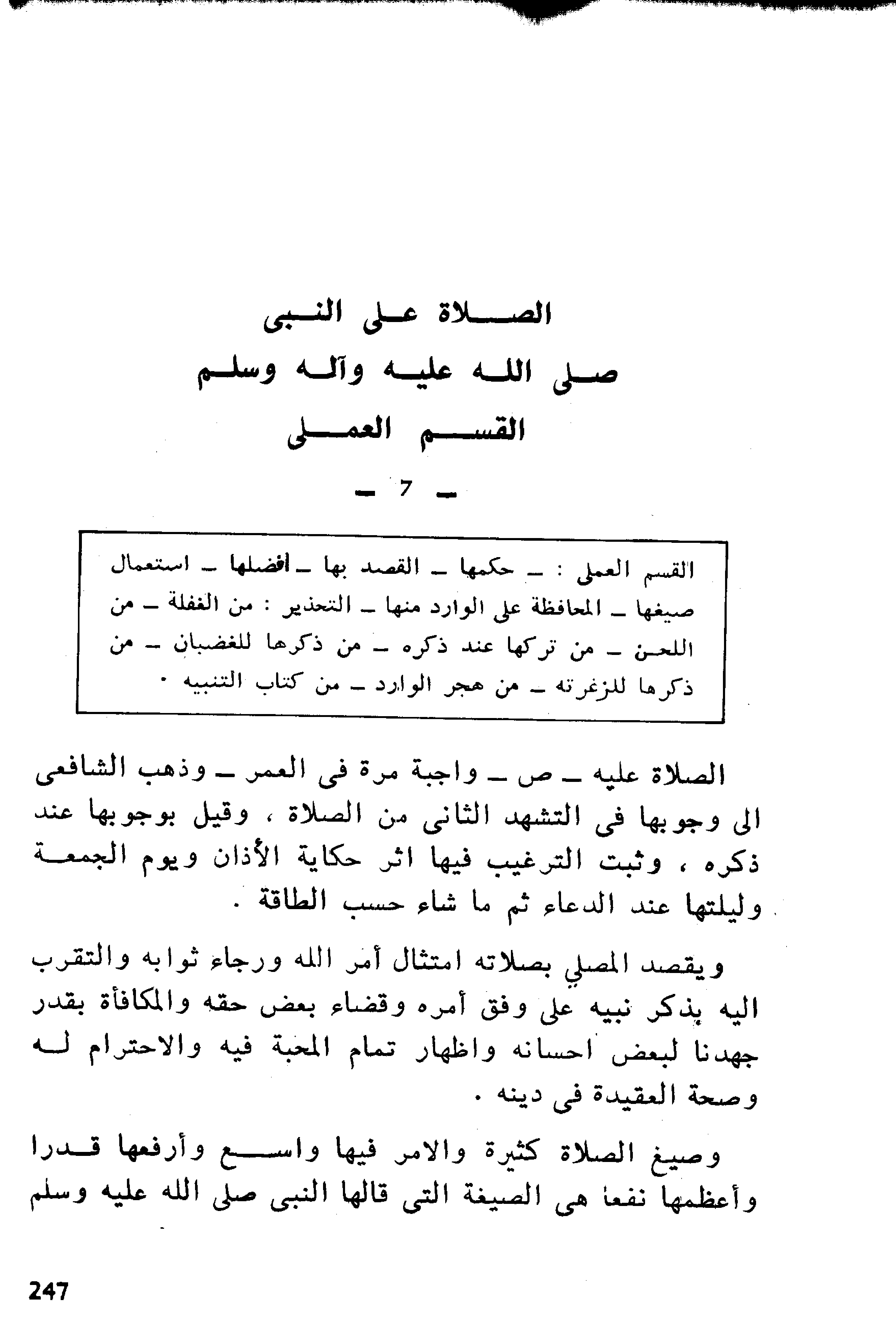 وقد هجر الناس الصلاة النبوية التوقيفية واقتصروا على غيرها، وزاد بعضهم فقال أن غيرها أنفع منها، فليحذر من هذا الهجر ومن هذا القول، فمحمد- صلى الله عليه وآله وسلم- أنفع الخلق وأرفعهم. وفعله أرفع الأفعال وأنفعها، وقولها أرفع الأقوال وأنفعها. فليجعل أصل صلاته الصلاة النبوية المروية وليجعل بعدها ما شاء.