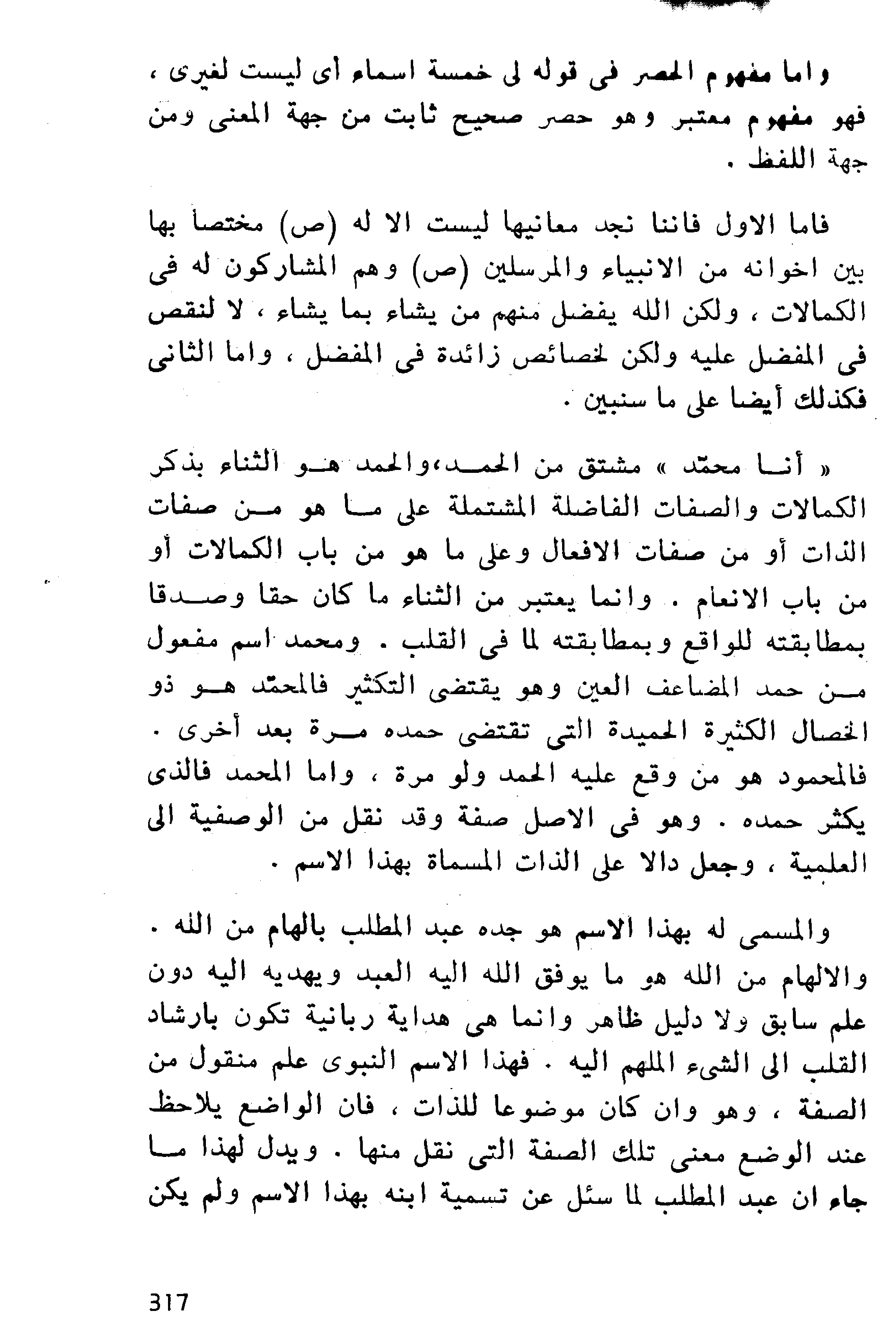 على أن هنالك شيئا آخر لا بد من ملاحظته وهو أن الإسمين يراد بهما الدلالة على تكميل الله له من ناحيتين، الناحية التي يكون فيها في مقام التعظيم والتكريم بالثناء عليه وهو ما يقتضيه اسم محمد. والناحية التي يكون فيها في مقام الخضوع والخشوع بحمده لله تبارك وتعالى وثنائه عليه، وهو ما يقتضيه اسم أحمد المنقول من المسند للفاعل، فمحمد دلنا على مقامه الأول الذي يكثر فيه له الحمد، وأحمد دلنا على مقامه الثاني الذي يكثر فيه منه الحمد، ودلنا على أنه في هذا المقام قد فاق سواه وكان فيه لا نظير له. وهذا المعنى لا يمكن أبدا أن يستفاد من حماد. على أن أحمد المأخوذ من السند إلى الفاعل هو الذي