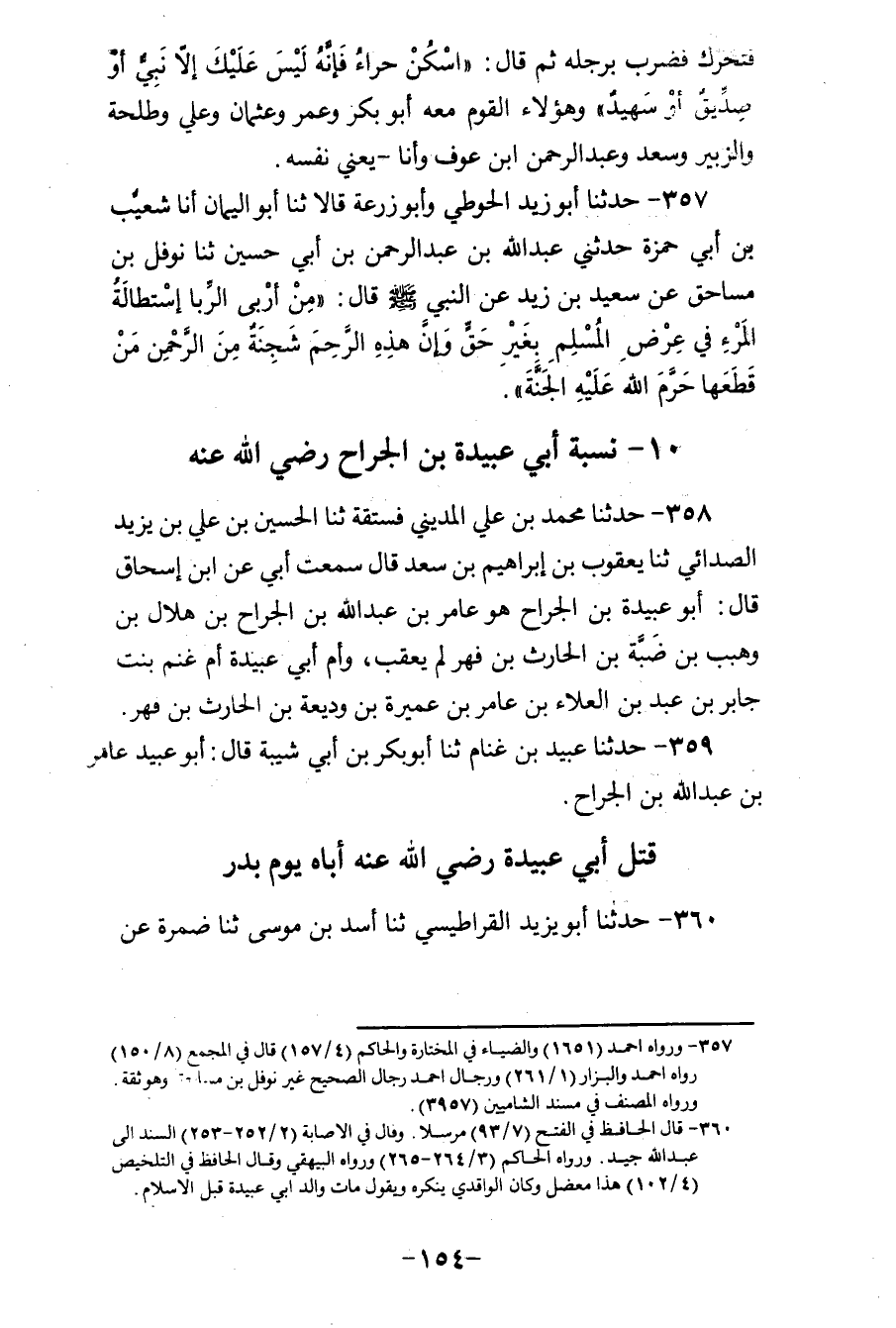 359 - حَدَّثَنَا عُبَيْدُ بْنُ غَنَّامٍ، ثنا أَبُو بَكْرِ بْنُ أَبِي شَيْبَةَ، قَالَ: «§أَبُو عُبَيْدٍ عَامِرُ بْنُ عَبْدِ اللهِ بْنِ الْجَرَّاحِ»