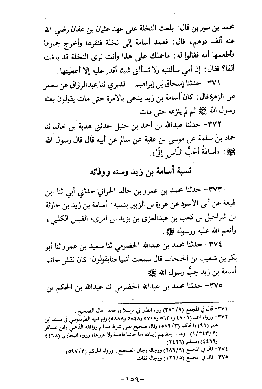 373 - حَدَّثَنَا مُحَمَّدُ بْنُ عَمْرِو بْنِ خَالِدٍ الْحَرَّانِيُّ، حَدَّثَنِي أَبِي، ثنا ابْنُ لَهِيعَةَ، عَنْ أَبِي الْأَسْوَدِ، عَنْ عُرْوَةَ بْنِ الزُّبَيْرِ، " §بِنَسَبهِ: أُسَامَةُ بْنُ زَيْدِ بْنِ حَارِثَةَ بْنِ شَرَاحِيلَ بْنِ كَعْبِ بْنِ عَبْدِ الْعُزَّى بْنِ يَزِيدَ بْنِ امْرِئِ الْقَيْسِ الْكَلْبِيُّ، وَأَنْعَمَ اللهُ عَلَيْهِ، وَرَسُولُهُ صَلَّى اللهُ عَلَيْهِ وَسَلَّمَ "