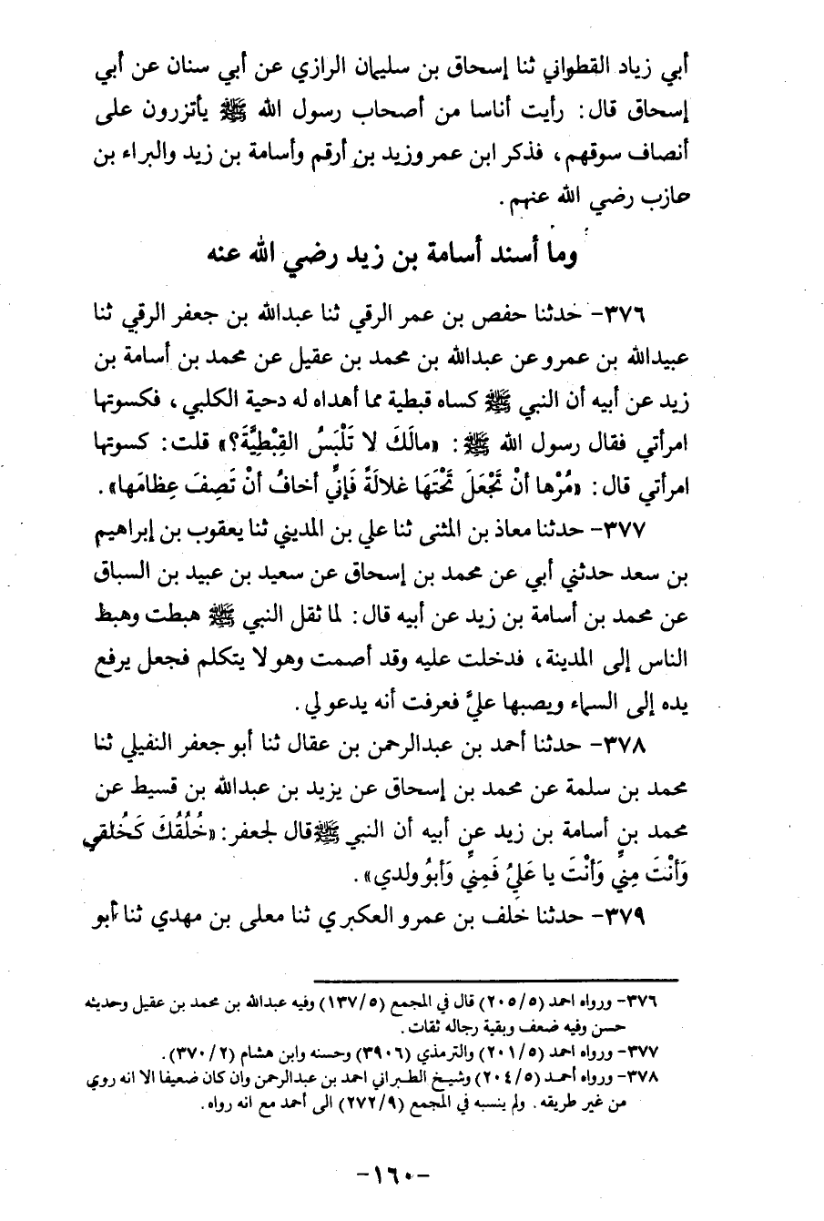 §وَمَا أَسْنَدَ أُسَامَةُ بْنُ زَيْدٍ رَضِيَ اللهُ عَنْهُ