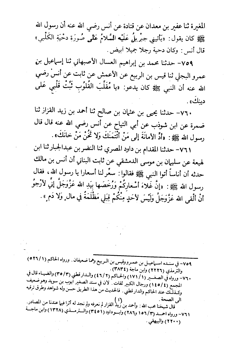 759 - حَدَّثَنَا مُحَمَّدُ بْنُ إِبْرَاهِيمَ الْعَسَّالُ الْأَصْبَهَانِيُّ، ثنا إِسْمَاعِيلُ بْنُ عَمْرٍو الْبَجَلِيُّ، ثنا قَيْسُ بْنُ الرَّبِيعِ، عَنِ الْأَعْمَشِ، عَنْ ثَابِتٍ، عَنْ أَنَسٍ رَضِيَ اللهُ عَنْهُ، أَنَّ النَّبِيَّ صَلَّى اللهُ عَلَيْهِ وَسَلَّمَ كَانَ يَدْعُو: «§يَا مُقَلِّبَ الْقُلُوبِ ثَبِّتْ قَلْبِي عَلَى دِينِكَ»