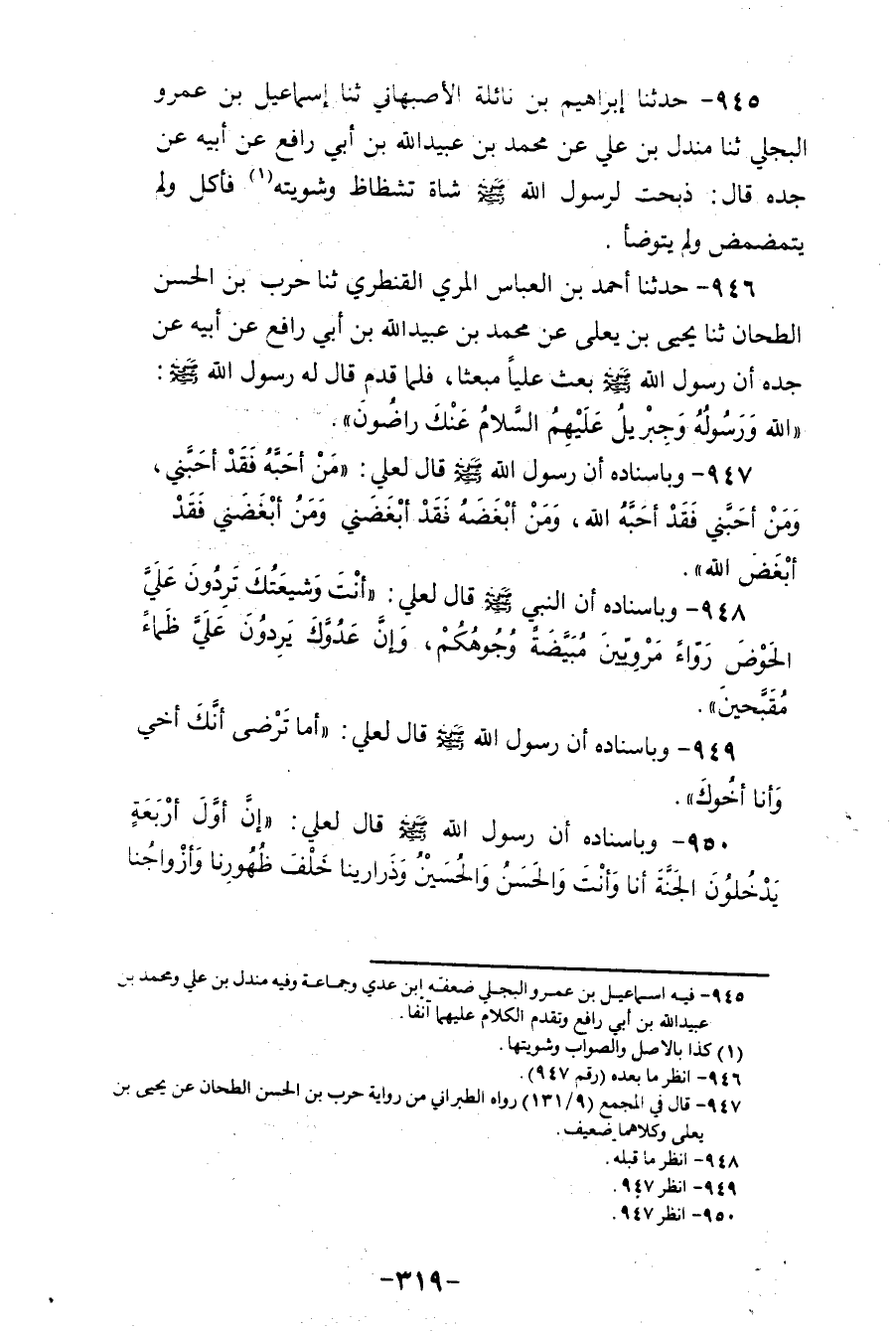 948 - وَبِإِسْنَادِهِ، أَنَّ النَّبِيَّ صَلَّى اللهُ عَلَيْهِ وَسَلَّمَ قَالَ لِعَلِيٍّ: «§أَنْتَ وَشِيعَتُكَ تَرِدُونَ عَلَيَّ الْحَوْضَ رُوَاءً مَرْوِيِّينَ، مُبَيَّضَةً وُجُوهُكُمْ، وَإِنَّ عَدُوَّكَ يَرِدُونَ عَلَيَّ ظِمَاءً مُقَبَّحِينَ»