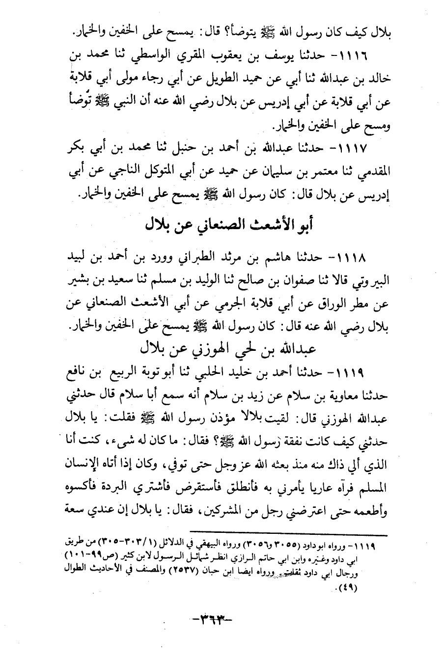 1118 - حَدَّثَنَا هَاشِمُ بْنُ مَرْثَدٍ الطَّبَرَانِيُّ، وَوَرْدُ بْنُ أَحْمَدَ بْنِ لَبِيدٍ الْبَيْرُوتِيُّ، قَالَا: ثنا صَفْوَانُ بْنُ صَالِحٍ، ثنا الْوَلِيدُ بْنُ مُسْلِمٍ، ثنا سَعِيدُ بْنُ بَشِيرٍ، عَنْ مَطَرٍ الْوَرَّاقِ، عَنْ أَبِي قِلَابَةَ الْجَرْمِيِّ، عَنْ أَبِي الْأَشْعَثِ الصَّنْعَانِيِّ، عَنْ بِلَالٍ رَضِيَ اللهُ عَنْهُ، قَالَ: «كَانَ رَسُولُ اللهِ صَلَّى اللهُ عَلَيْهِ وَسَلَّمَ §يَمْسَحُ عَلَى الْخُفَّيْنِ، وَالْخِمَارِ»