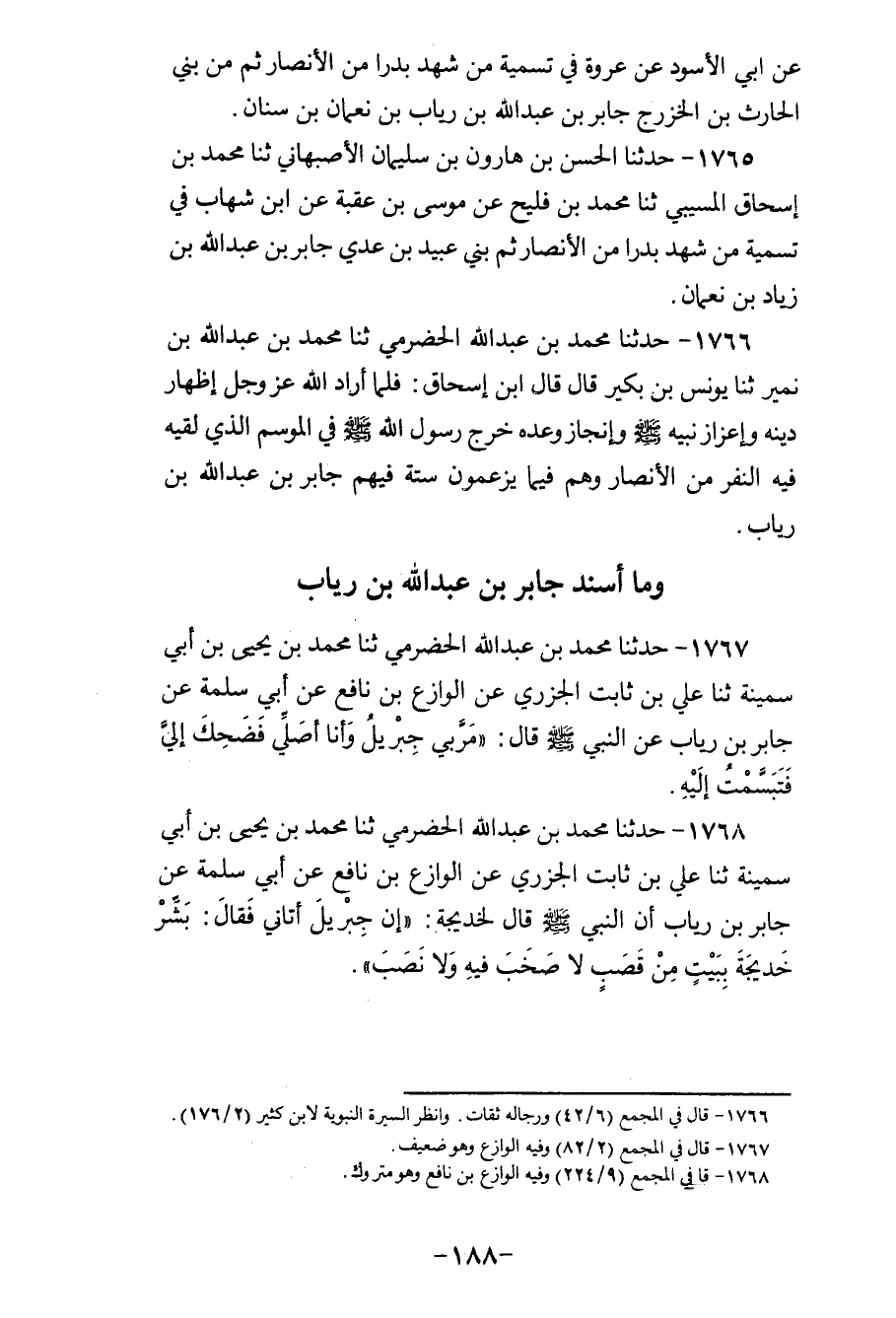 1765 - حَدَّثَنَا الْحَسَنُ بْنُ هَارُونَ بْنِ سُلَيْمَانَ الْأَصْبَهَانِيُّ، ثنا مُحَمَّدُ بْنُ إِسْحَاقَ الْمُسَيَّبِيُّ، ثنا مُحَمَّدُ بْنُ فُلَيْحٍ، عَنْ مُوسَى بْنِ عُقْبَةَ، عَنِ ابْنِ شِهَابٍ: «فِي تَسْمِيَةِ §مَنْ شَهِدَ بَدْرًا مِنَ الْأَنْصَارِ، ثُمَّ بَنِي عُبَيْدِ بْنِ عَدِيٍّ جَابِرُ بْنُ عَبْدِ اللهِ بْنِ زِيَادِ بْنِ نُعْمَانَ»