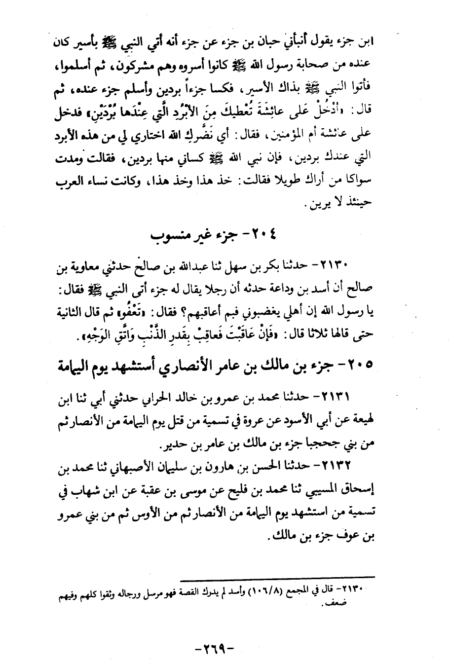 2132 - حَدَّثَنَا الْحَسَنُ بْنُ هَارُونَ بْنِ سُلَيْمَانَ الْأَصْبَهَانِيُّ، ثنا مُحَمَّدُ بْنُ إِسْحَاقَ الْمُسَيَّبِيُّ، ثنا مُحَمَّدُ بْنُ فُلَيْحٍ، عَنْ مُوسَى بْنِ عُقْبَةَ، عَنِ ابْنِ شِهَابٍ: «فِي تَسْمِيَةِ §مَنِ اسْتُشْهِدَ يَوْمَ الْيَمَامَةِ مِنَ الْأَنْصَارِ، ثُمَّ مِنَ الْأَوْسِ، ثُمَّ مِنْ بَنِي عَمْرِو بْنِ عَوْفٍ جُزْءُ بْنُ مَالِكٍ»