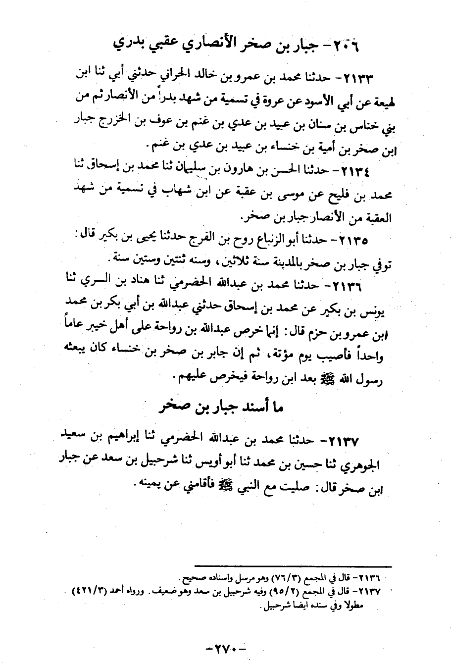 §مَا أَسْنَدَ جُبَارُ بْنُ صَخْرٍ
