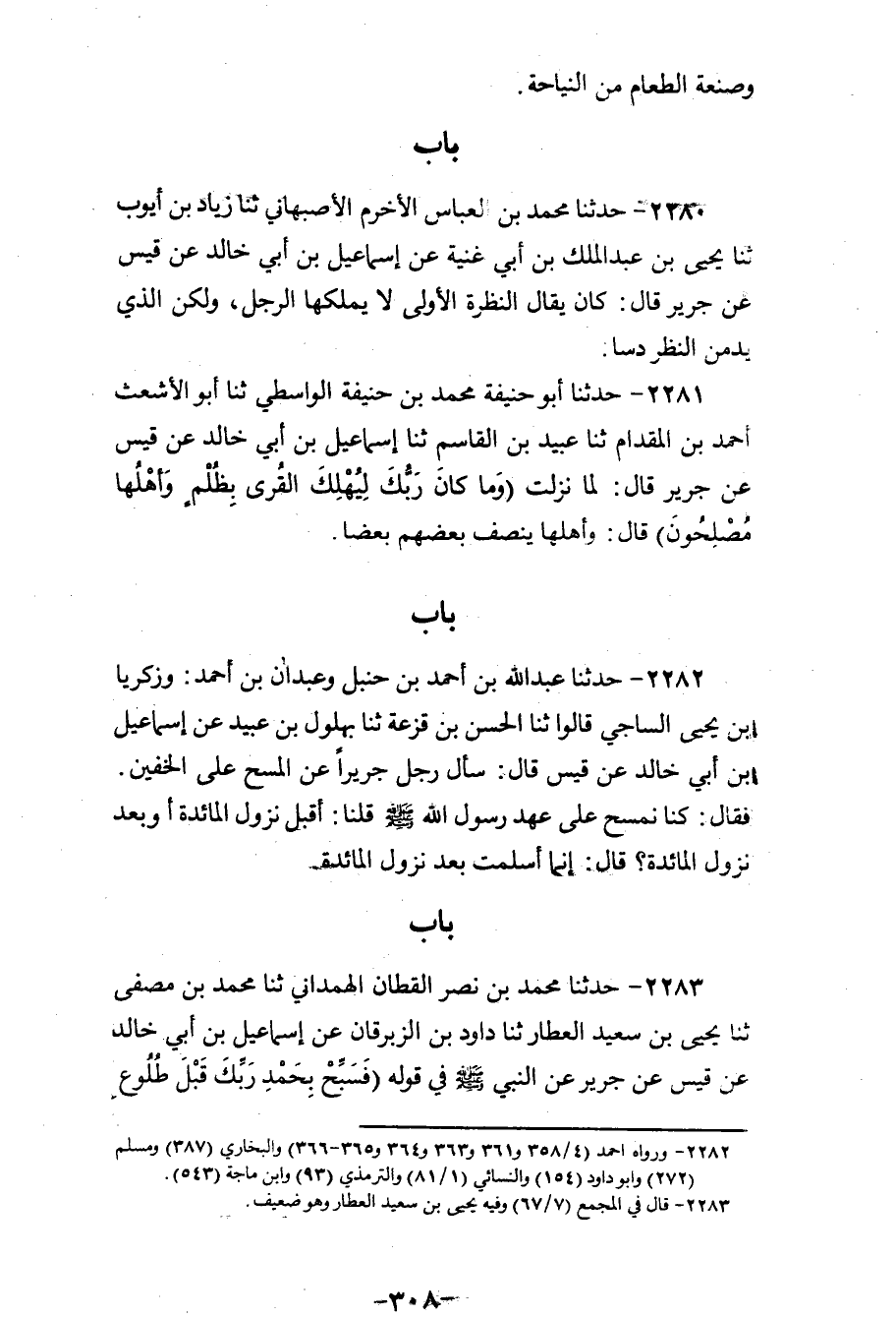 2282 - حَدَّثَنَا عَبْدُ اللهِ بْنُ أَحْمَدَ بْنِ حَنْبَلٍ، وَعَبْدَانُ بْنُ أَحْمَدَ، وَزَكَرِيَّا بْنُ يَحْيَى السَّاجِيُّ، قَالُوا: ثنا الْحَسَنُ بْنُ قَزَعَةَ، ثنا بُهْلُولُ بْنُ عُبَيْدٍ، عَنْ إِسْمَاعِيلَ بْنِ أَبِي خَالِدٍ، عَنْ قَيْسٍ، قَالَ: سَأَلَ رَجُلٌ جَرِيرًا عَنِ §الْمَسْحِ عَلَى الْخُفَّيْنِ، فَقَالَ: «كُنَّا نَمْسَحُ عَلَى عَهْدِ رَسُولِ اللهِ صَلَّى اللهُ عَلَيْهِ وَسَلَّمَ» قُلْنَا: أَقَبْلَ نُزُولِ الْمَائِدَةِ أَوْ بَعْدَ نُزُولِ الْمَائِدَةِ، قَالَ: إِنَّمَا أَسْلَمْتُ بَعْدَ نُزُولِ الْمَائِدَةِ