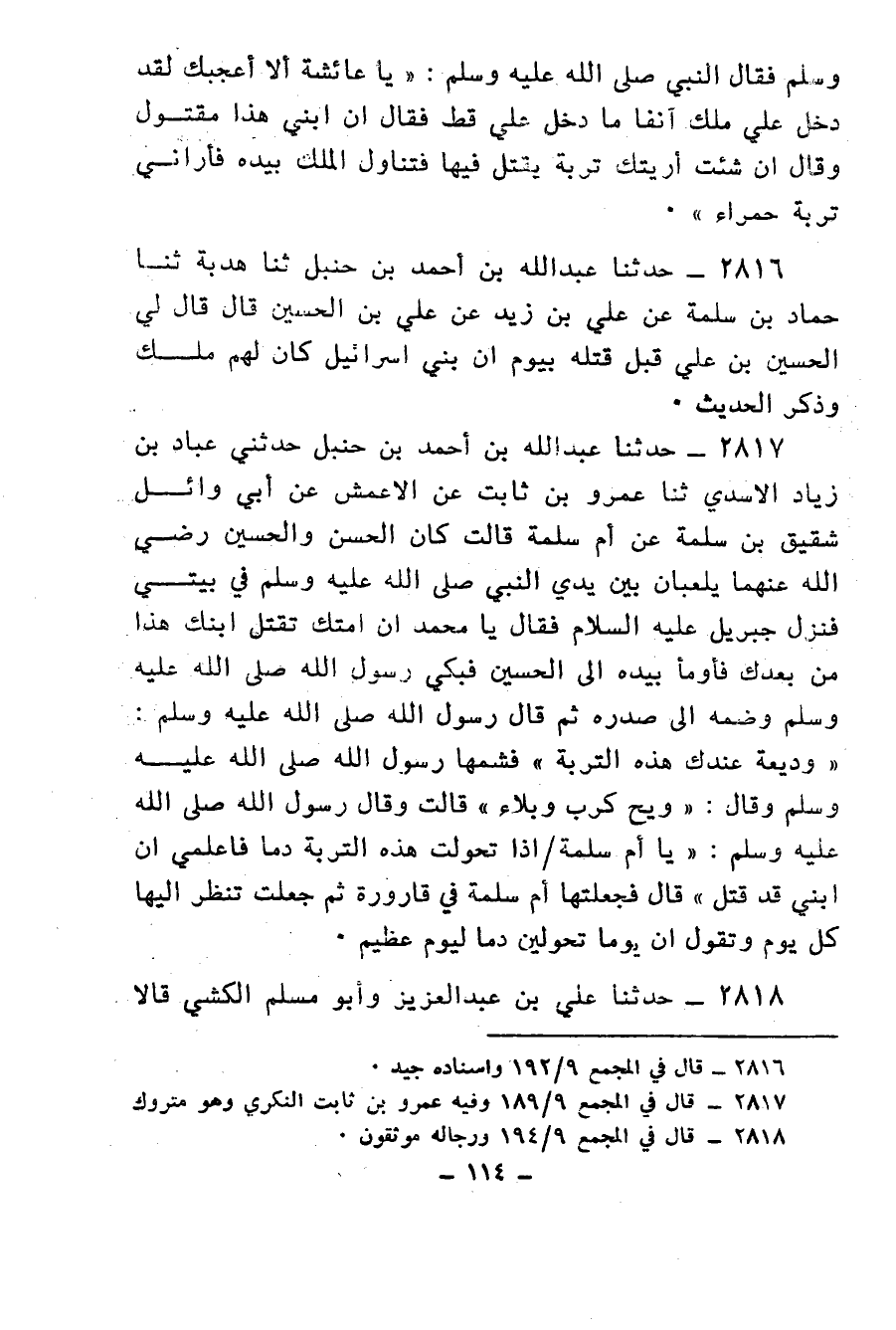 2840 - حَدَّثَنَا مُحَمَّدُ بْنُ عَبْدِ اللهِ الْحَضْرَمِيُّ، ثنا يَحْيَى الْحِمَّانِيُّ، ثنا حَمَّادُ بْنُ زَيْدٍ، عَنْ هِشَامِ بْنِ حَسَّانَ، عَنْ مُحَمَّدِ بْنِ سِيرِينَ، قَالَ: «§لَمْ يَكُنْ فِي السَّمَاءِ حُمْرَةٌ حَتَّى قُتِلَ الْحُسَيْنُ»