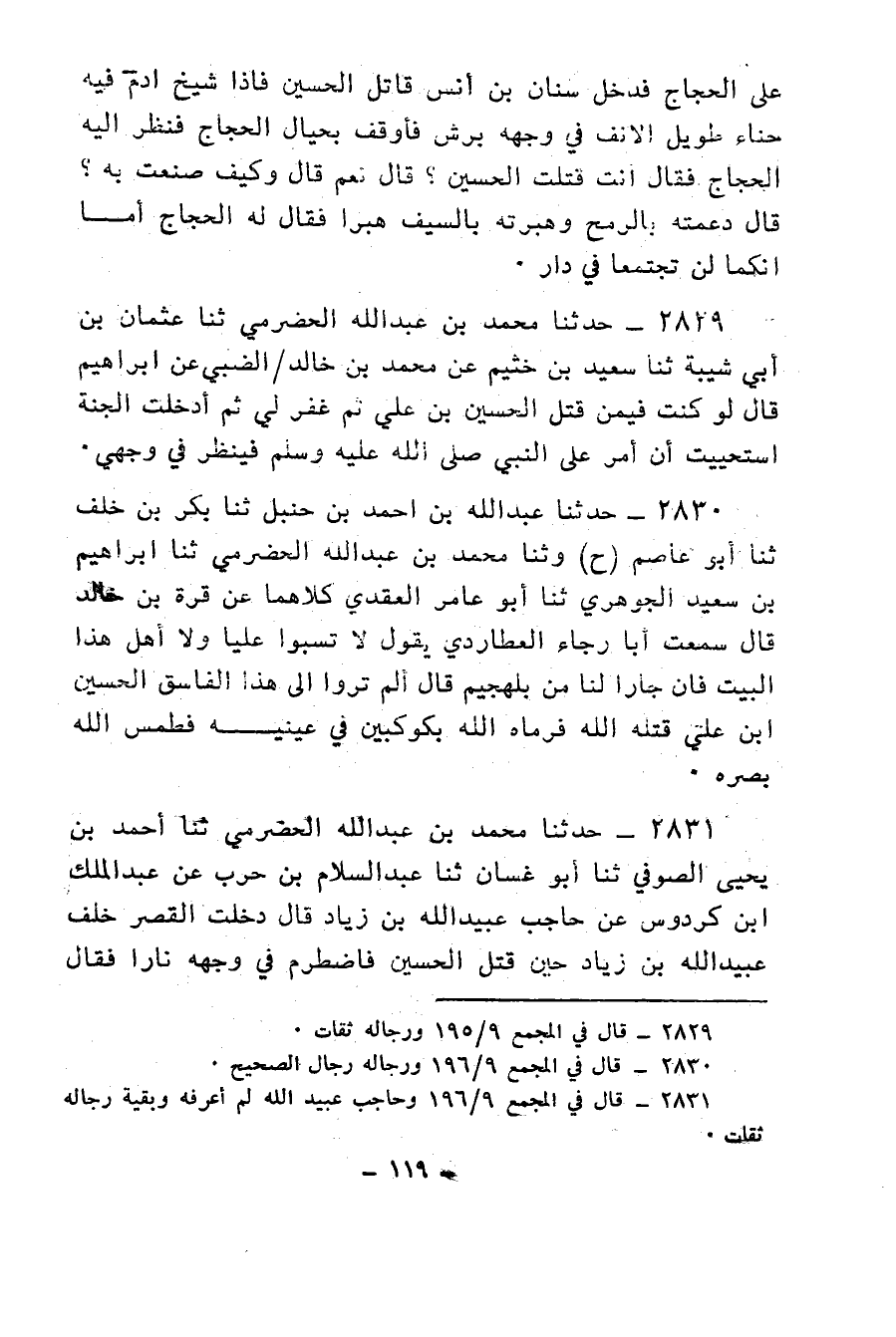 2855 - حَدَّثَنَا عَلِيُّ بْنُ عَبْدِ الْعَزِيزِ، ثنا أَبُو نُعَيْمٍ، حَدَّثَنَا فِطْرُ بْنُ خَلِيفَةَ، عَنْ مُنْذِرٍ الثَّوْرِيِّ، قَالَ: كُنَّا إِذَا ذَكَرْنَا حُسَيْنًا وَمَنْ قُتِلَ مَعَهُ رَضِيَ اللهُ عَنْهُمْ قَالَ مُحَمَّدُ بْنُ الْحَنَفِيَّةِ: «§قُتِلَ مَعَهُ سَبْعَةَ عَشَرَ شَابًّا، كُلُّهُمُ ارْتَكَضَ فِي رَحِمِ فَاطِمَةَ رَضِيَ اللهُ عَنْهَا»