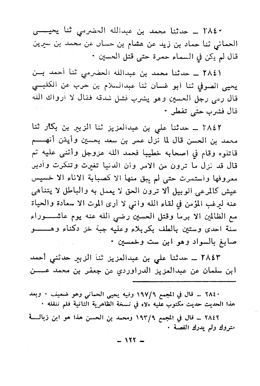 2867 - حَدَّثَنَا عَبْدُ اللهِ بْنُ أَحْمَدَ بْنِ حَنْبَلٍ، ثنا هُدْبَةُ بْنُ خَالِدٍ، حَدَّثَنَا حَمَّادُ بْنُ سَلَمَةَ، عَنْ عَمَّارِ بْنِ أَبِي عَمَّارٍ، عَنْ أُمِّ سَلَمَةَ، قَالَتْ: «§سَمِعْتُ الْجِنَّ تَنُوحُ عَلَى الْحُسَيْنِ رَضِيَ اللهُ عَنْهُ»