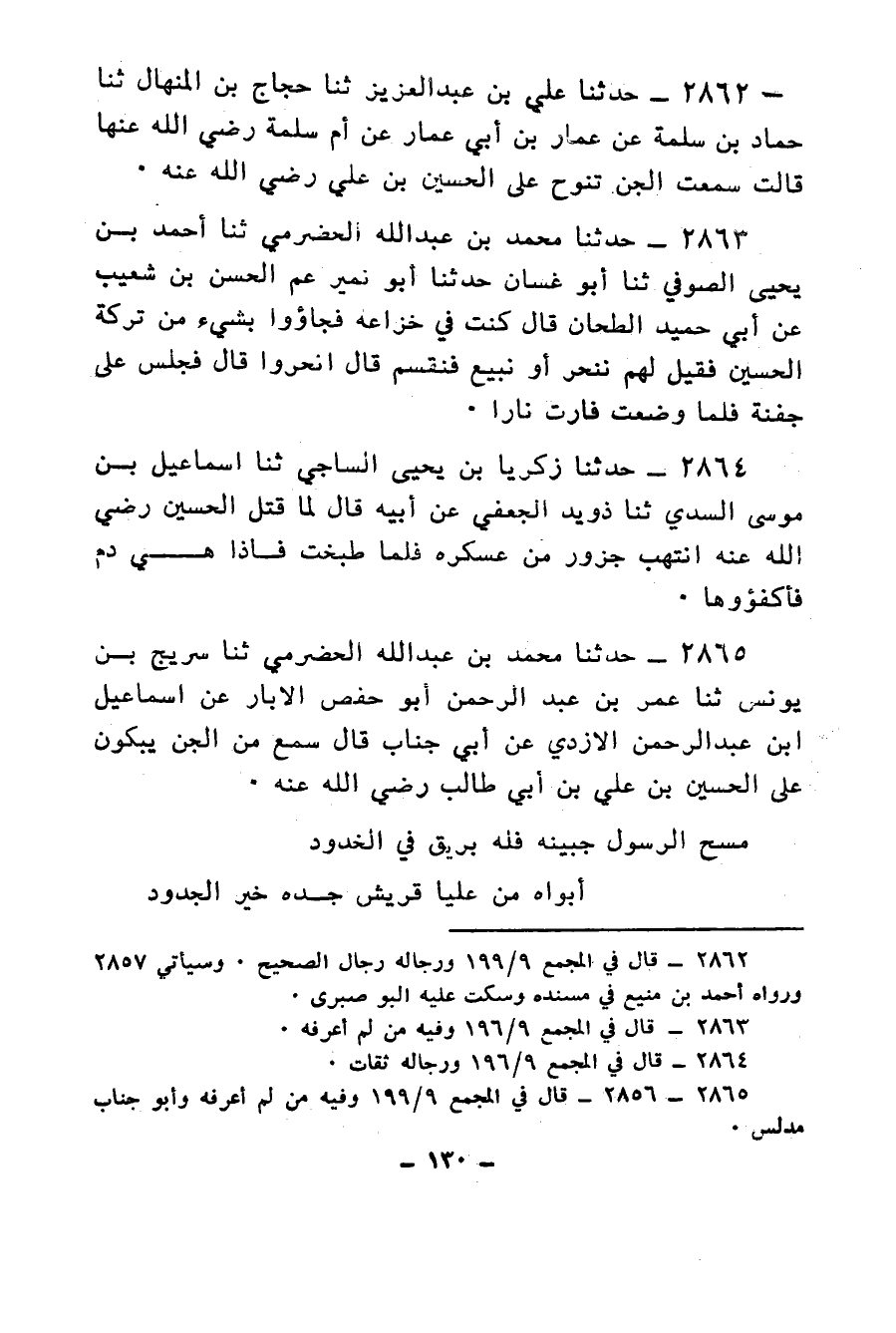 ثُمَّ أَتَى بِدُهْنٍ، فَقَالَ: ادَّهِنْ. فَقُلْتُ: قَدِ ادَّهَنْتُ يَا ابْنَ رَسُولِ اللهِ. قَالَ: إِنَّهُ بَنَفْسَجٌ. قُلْتُ: وَمَا فِي الْبَنَفْسَجِ؟ قَالَ: حَدَّثَنِي أَبِي عَنْ جَدِّي، قَالَ: قَالَ رَسُولُ اللهِ صَلَّى اللهُ عَلَيْهِ وَسَلَّمَ: «إِنَّ §فَضْلَ الْبَنَفْسَجِ عَلَى سَائِرِ الْأَدَهْانِ كَفَضْلِ وَلَدِ عَبْدِ الْمُطَّلِبِ عَلَى سَائِرِ قُرَيْشٍ، وَإِنَّ فَضْلَ دُهْنِ الْبَنَفْسَجِ كَفَضْلِ الْإِسْلَامِ عَلَى سَائِرِ الْأَدْيَانِ»