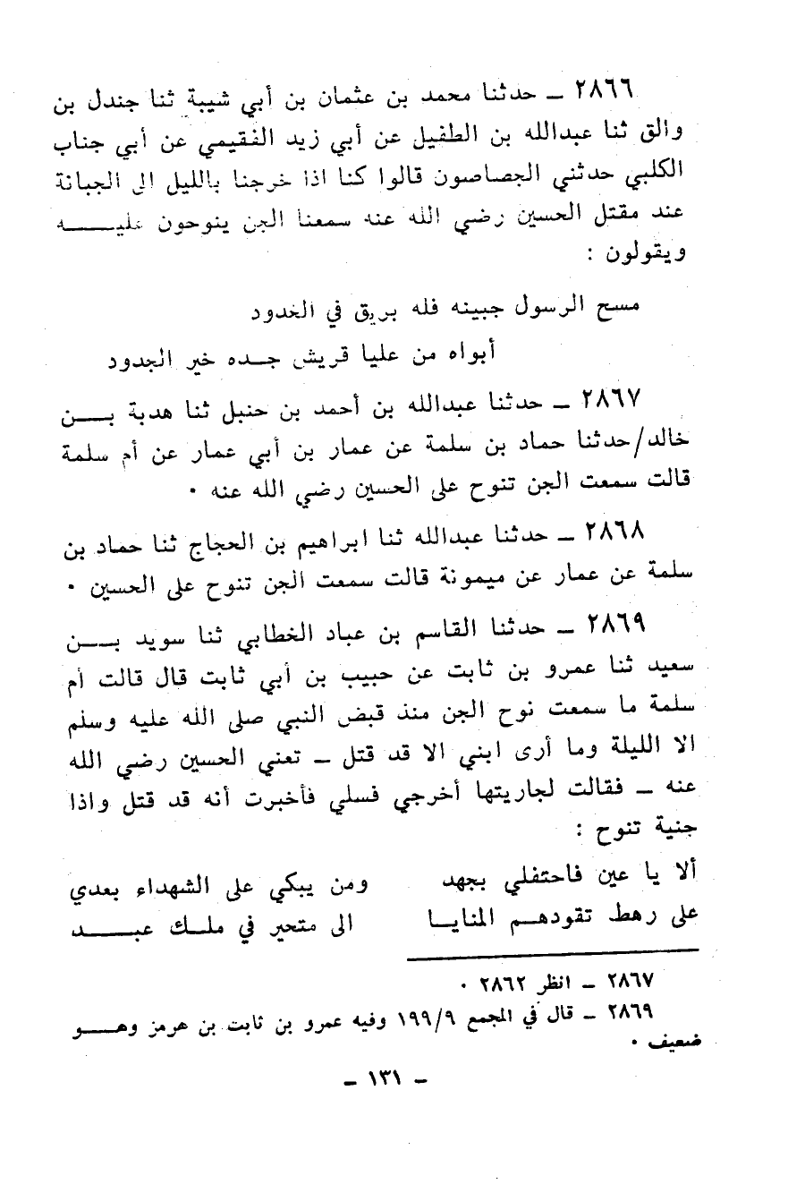 2895 - حَدَّثَنَا أَبُو خَلِيفَةَ الْفَضْلُ بْنُ الْحُبَابِ الْجُمَحِيُّ، وَإِبْرَاهِيمُ بْنُ هَاشِمٍ الْبَغَوِيُّ، قَالَا: ثنا عَبْدُ الرَّحْمَنِ بْنُ سَلَّامٍ الْجُمَحِيُّ، ثنا هِشَامٌ أَبُو الْمِقْدَامِ، عَنْ أُمِّهِ فَاطِمَةَ بِنْتِ الْحُسَيْنِ، عَنْ أَبِيهَا رَضِيَ اللهُ عَنْهُ أَنَّ النَّبِيَّ صَلَّى اللهُ عَلَيْهِ وَسَلَّمَ قَالَ: " §مَنْ أَصَابَتْهُ مُصِيبَةٌ، فَقَالَ إِذَا ذَكَرَهَا: إِنَّا لِلَّهِ وَإِنَّا إِلَيْهِ رَاجِعُونَ، جَدَّدَ اللهُ لَهُ مِنْ أَجْرِهَا مِثْلَ مَا كَانَ يَوْمَ أَصَابَتْهُ "