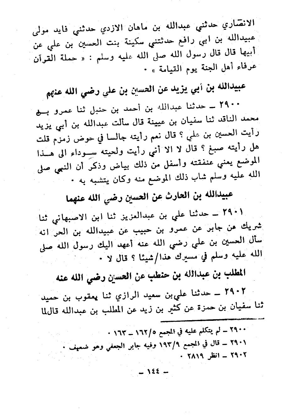 2939 - حَدَّثَنَا الْحُسَيْنُ بْنُ إِسْحَاقَ التُّسْتَرِيُّ، ثنا عُثْمَانُ بْنُ أَبِي شَيْبَةَ، حَدَّثَنَا زَيْدُ بْنُ الْحُبَابِ، ثنا أُسَامَةُ بْنُ زَيْدٍ، حَدَّثَنِي الزُّهْرِيُّ، عَنْ أَنَسٍ رَضِيَ اللهُ عَنْهُ أَنَّ رَسُولَ اللهِ صَلَّى اللهُ عَلَيْهِ وَسَلَّمَ مَرَّ عَلَى حَمْزَةَ بَعْدَ أُحُدٍ وَقَدْ مُثِّلَ بِهِ، فَقَالَ: «§لَوْلَا أَنْ تَجِدَ صَفِيَّةُ فِي نَفْسِهَا لَتَرَكْتُهُ حَتَّى تَأْكُلَهُ الْعَافِيَةُ حَتَّى يُحْشَرَ مِنْ بُطُونِهَا» . ثُمَّ دَعَا بِنَمِرَةٍ، فَكَانَتْ إِذَا مُدَّتْ عَلَى رَأْسِهِ بَدَتْ رِجْلَاهُ، وَإِذَا مُدَّتَ عَلَى رِجْلَيْهِ الثِّيَابُ بَدَا رَأْسُهُ، فَقَالَ رَسُولُ اللهِ صَلَّى اللهُ عَلَيْهِ وَسَلَّمَ: «مُدُّوهَا عَلَى رَأْسِهِ» . وَقَلَّتِ الثِّيَابُ وَكَثُرَتِ الْقَتْلَى، وَكَانَ الرَّجُلُ وَالرَّجُلَانِ وَالثَّلَاثَةُ يُكَفَّنُونَ فِي الثَّوْبِ الْوَاحِدِ، وَكَانَ رَسُولُ اللهِ صَلَّى اللهُ عَلَيْهِ وَسَلَّمَ يَسْأَلُ أَيُّهُمْ أَكْثَرُ قُرْآنًا فَيُقَدِّمُهُ إِلَى الْقِبْلَةِ، فَدُفِنُوا وَلَمْ يُصَلِّ عَلَيْهِمْ