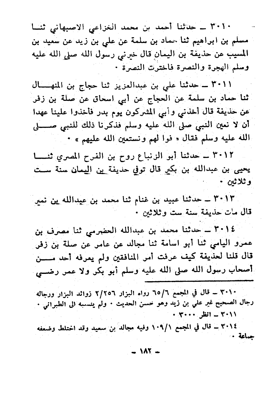 3058 - حَدَّثَنَا عَبْدَانُ بْنُ أَحْمَدَ، ثنا عَبْدُ اللهِ بْنُ مُحَمَّدٍ الزُّهْرِيُّ، ثنا سُفْيَانُ بْنُ عُيَيْنَةَ، عَنْ مُطَرِّفٍ، عَنِ الشَّعْبِيِّ، عَنْ حُذَيْفَةَ بْنِ أَسِيدٍ، قَالَ: «§رَأَيْتُ أَبَا بَكْرٍ وَعُمَرَ رَضِيَ اللهُ عَنْهُمَا وَمَا يُضَحِّيَانِ مَخَافَةَ أَنْ يُسْتَنَّ بِهِمَا، فَحَمَلَنِي أَهْلِي عَلَى الْجَفَاءِ بَعْدَ أَنْ عَلِمْتُ مِنَ السُّنَّةِ، حَتَّى إِنِّي لَأُضَحِّي عَنْ كُلٍّ»