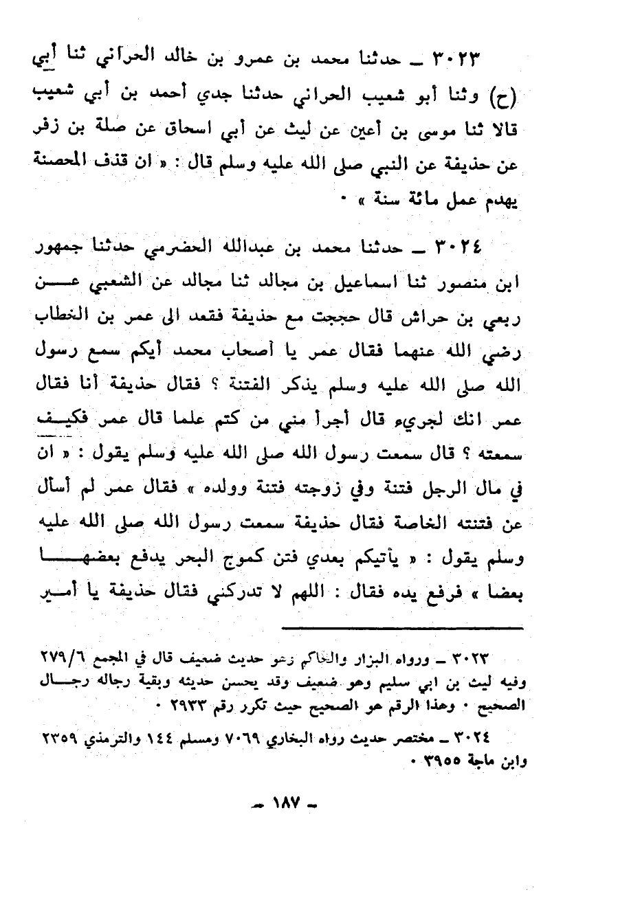 3073 - حَدَّثَنَا مَسْعَدَةُ بْنُ سَعْدٍ الْعَطَّارُ الْمَكِّيُّ، ثنا إِبْرَاهِيمُ بْنُ الْمُنْذِرِ الْحِزَامِيُّ، ثنا سُفْيَانُ بْنُ حَمْزَةَ، عَنْ كَثِيرِ بْنِ زَيْدٍ، عَنِ الْمُطَّلِبِ بْنِ عَبْدِ اللهِ بْنِ حَنْطَبٍ، عَنْ حَكِيمِ بْنِ حِزَامٍ أَنَّهُ بَاعَ دَارَهُ مِنْ مُعَاوِيَةَ رَضِيَ اللهُ عَنْهُ بِسِتِّينَ أَلْفًا، فَقَالُوا: غَبَنَكَ وَاللهِ مُعَاوِيَةُ. فَقَالَ: «§مَا أَخَذْتُهَا فِي الْجَاهِلِيَّةِ إِلَّا بَزِقِّ خَمْرٍ، أُشْهِدُكُمْ أَنَّهَا فِي سَبِيلِ اللهِ وَالْمَسَاكِينِ وَالرِّقَابِ، وَأَيُّنَا الْمَغْبُونُ؟»