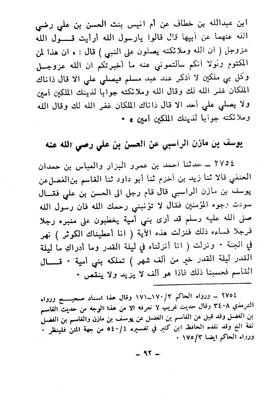 2759 - حَدَّثَنَا مُحَمَّدُ بْنُ رَاشِدٍ الْأَصْبَهَانِيُّ، ثنا إِبْرَاهِيمُ بْنُ سَعِيدٍ الْجَوْهَرِيُّ، ثنا سَعِيدُ بْنُ مُحَمَّدٍ الْوَرَّاقُ، ثنا فُضَيْلُ بْنُ غَزْوَانَ، حَدَّثَنَا أَبُو الْمُغِيرَةِ الذُّهْلِيُّ، حَدَّثَنِي فُلْفُلَةُ الْجُعْفِيُّ، قَالَ: سَمِعْتُ الْحَسَنَ بْنَ عَلِيٍّ رَضِيَ اللهُ عَنْهُ يَقُولُ: «§رَأَيْتُ النَّبِيَّ صَلَّى اللهُ عَلَيْهِ وَسَلَّمَ فِي الْمَنَامِ مُتَعَلِّقًا بِالْعَرْشِ، وَرَأَيْتُ أَبَا بَكْرٍ رَضِيَ اللهُ عَنْهُ أَخَذَ بِحَقْوَيِ النَّبِيِّ صَلَّى اللهُ عَلَيْهِ وَسَلَّمَ، وَرَأَيْتُ عُمَرَ رَضِيَ اللهُ عَنْهُ أَخَذَ بِحَقْوَيْ أَبِي بَكْرٍ رَضِيَ اللهُ عَنْهُ، وَرَأَيْتُ عُثْمَانَ رَضِيَ اللهُ عَنْهُ أَخَذَ بِحَقْوَيْ عُمَرَ رَضِيَ اللهُ عَنْهُ، وَرَأَيْتُ الدَّمَ يَنْصَبُّ مِنَ السَّمَاءِ إِلَى الْأَرْضِ» . فَحَدَّثَ الْحَسَنُ بِهَذَا الْحَدِيثِ وَعِنْدَهُ قَوْمٌ مِنَ الشِّيعَةِ، فَقَالُوا: وَمَا رَأَيْتَ عَلِيًّا؟ فَقَالَ الْحَسَنُ: «مَا كَانَ أَحَدٌ أَحَبَّ إِلَيَّ أَنْ أَرَاهُ أَخَذَ بِحَقْوَيِ النَّبِيِّ صَلَّى اللهُ عَلَيْهِ وَسَلَّمَ مِنْ عَلِيٍّ، وَلَكِنَّهَا رُؤْيَا رَأَيْتُهَا»