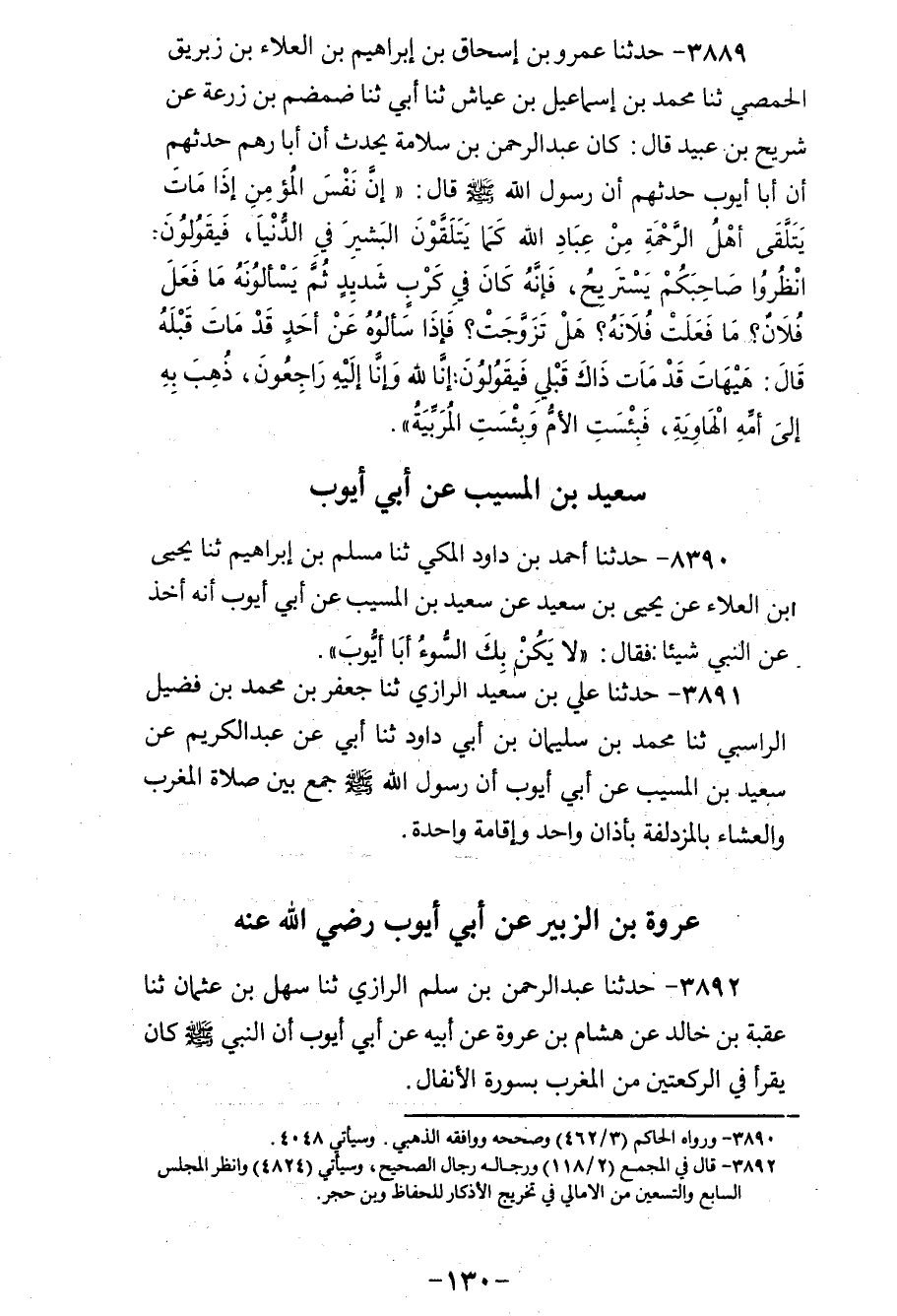 3890 - حَدَّثَنَا أَحْمَدُ بْنُ دَاوُدَ الْمَكِّيُّ، ثنا مُسْلِمُ بْنُ إِبْرَاهِيمَ، ثنا يَحْيَى بْنُ الْعَلَاءِ، عَنْ يَحْيَى بْنِ سَعِيدٍ، عَنْ سَعِيدِ بْنِ الْمُسَيِّبِ، عَنْ أَبِي أَيُّوبَ أَنَّهُ أَخَذَ، عَنِ النَّبِيِّ شَيْئًا، فَقَالَ: «§لَا يَكُنْ بِكَ السُّوءُ أَبَا أَيُّوبَ»