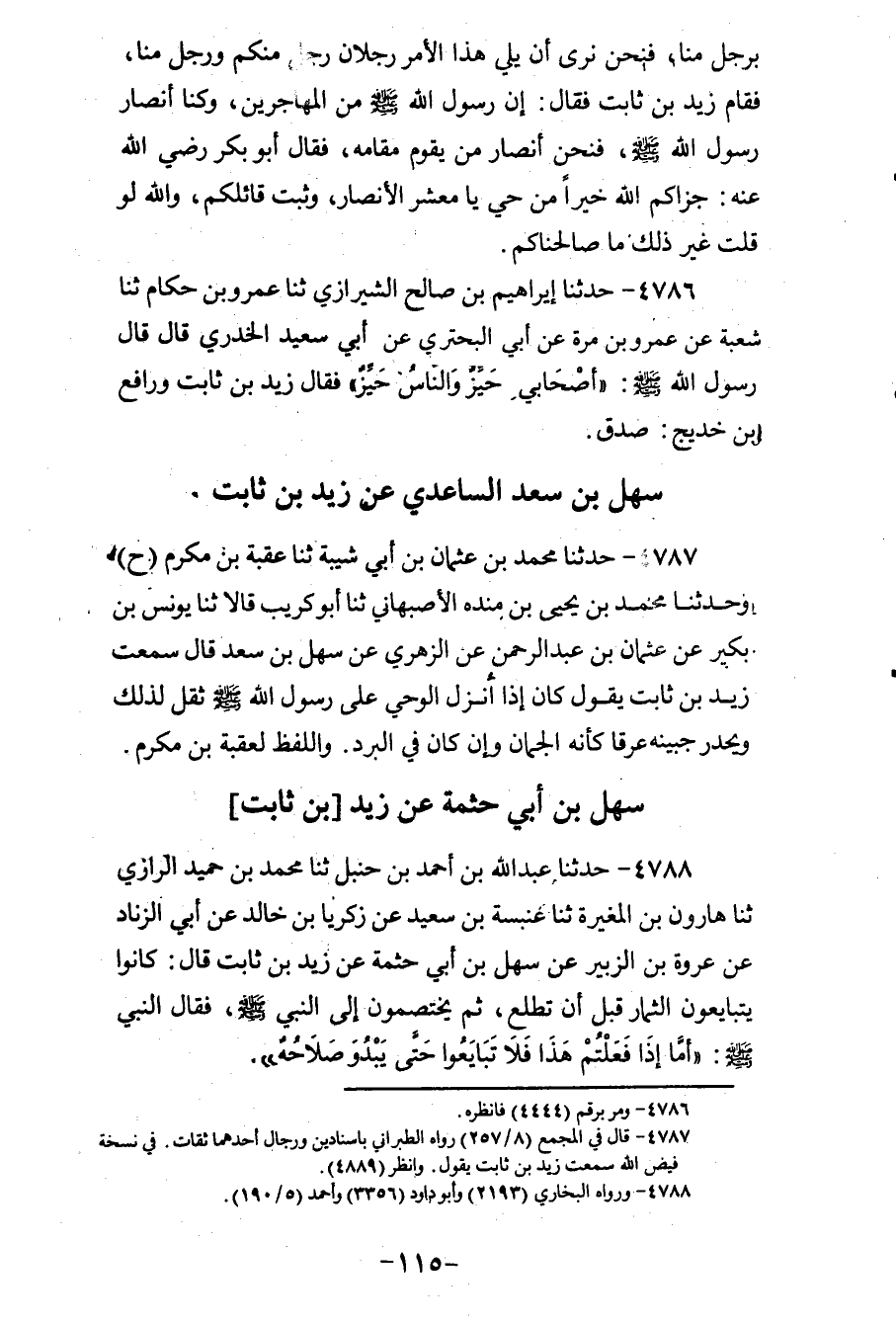 §سَهْلُ بْنُ سَعْدٍ السَّاعِدِيُّ، عَنْ زَيْدِ بْنِ ثَابِتٍ