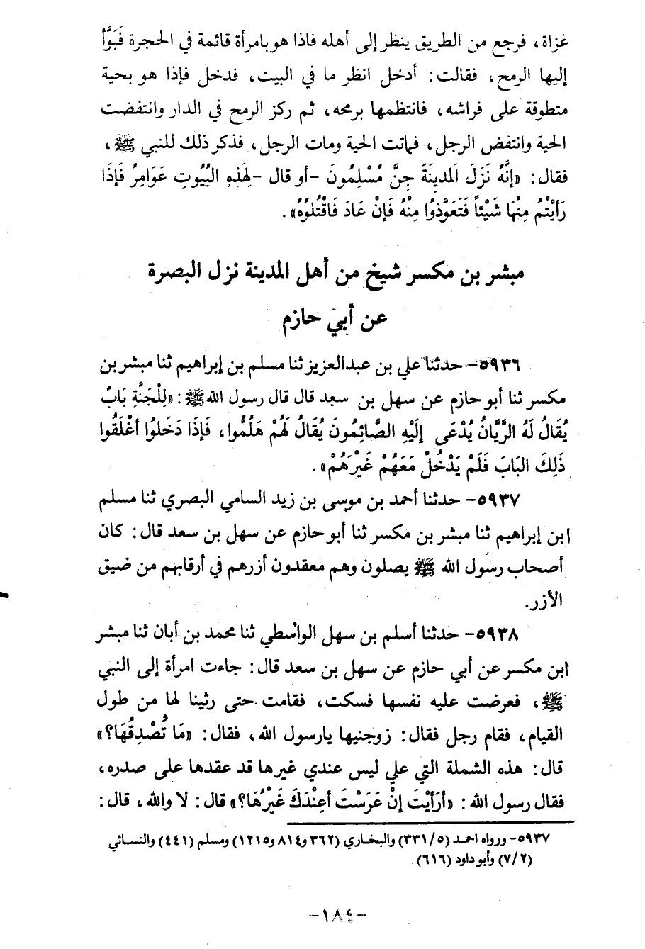 5937 - حَدَّثَنَا أَحْمَدُ بْنُ مُوسَى بْنِ زَيْدٍ السَّامِيُّ الْبَصْرِيُّ، ثنا مُسْلِمُ بْنُ إِبْرَاهِيمَ، ثنا مُبَشِّرُ بْنُ مُكَسِّرٍ، ثنا أَبُو حَازِمٍ، عَنْ سَهْلِ بْنِ سَعْدٍ قَالَ: «كَانَ أَصْحَابُ رَسُولِ اللهِ صَلَّى اللهُ عَلَيْهِ وَسَلَّمَ، §يُصَلُّونَ وَهُمْ مُعْقِدُونَ أُزُرَهُمْ فِي أَرْقَابِهِمْ مِنْ ضِيقِ الْأُزُرِ»