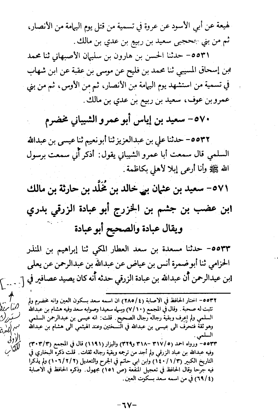 5531 - حَدَّثَنَا الْحَسَنُ بْنُ هَارُونَ بْنِ سُلَيْمَانَ الْأَصْبَهَانِيُّ، ثنا مُحَمَّدُ بْنُ إِسْحَاقَ الْمُسَيِّبِيُّ، ثنا مُحَمَّدُ بْنُ فُلَيْحٍ، عَنْ مُوسَى بْنِ عُقْبَةَ، عَنِ ابْنِ شِهَابٍ: «§فِي تَسْمِيَةِ مَنِ اسْتُشْهِدَ يَوْمَ الْيَمَامَةِ مِنَ الْأَنْصَارِ، ثُمَّ مِنَ الْأَوْسِ، ثُمَّ مِنْ بَنِي عَمْرِو بْنِ عَوْفٍ، سَعِيدُ بْنُ رَبِيعِ بْنِ عَدِيِّ بْنِ مَالِكٍ»