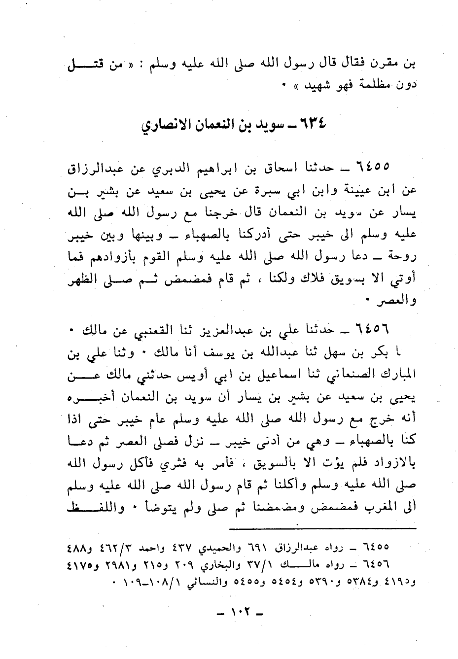 6500 - حَدَّثَنَا أَبُو خَلِيفَةَ، ثنا عَبْدُ اللهِ بْنُ مُحَمَّدِ بْنِ أَسْمَاءَ، ثنا جُوَيْرِيَةُ بْنُ أَسْمَاءَ، عَنْ مَالِكِ بْنِ أَنَسٍ، عَنِ الزُّهْرِيِّ، أَنَّ أَبَا جَمِيلَةَ أَخْبَرَهُ، وَنَحْنُ مَعَ سَعِيدِ بْنِ الْمُسَيِّبِ جُلُوسٌ، فَزَعَمَ أَبُو جَمِيلَةَ أَنَّهُ «§أَدْرَكَ النَّبِيَّ صَلَّى اللهُ عَلَيْهِ وَسَلَّمَ، وَكَانَ مَعَهُ عَامَ الْفَتْحِ»