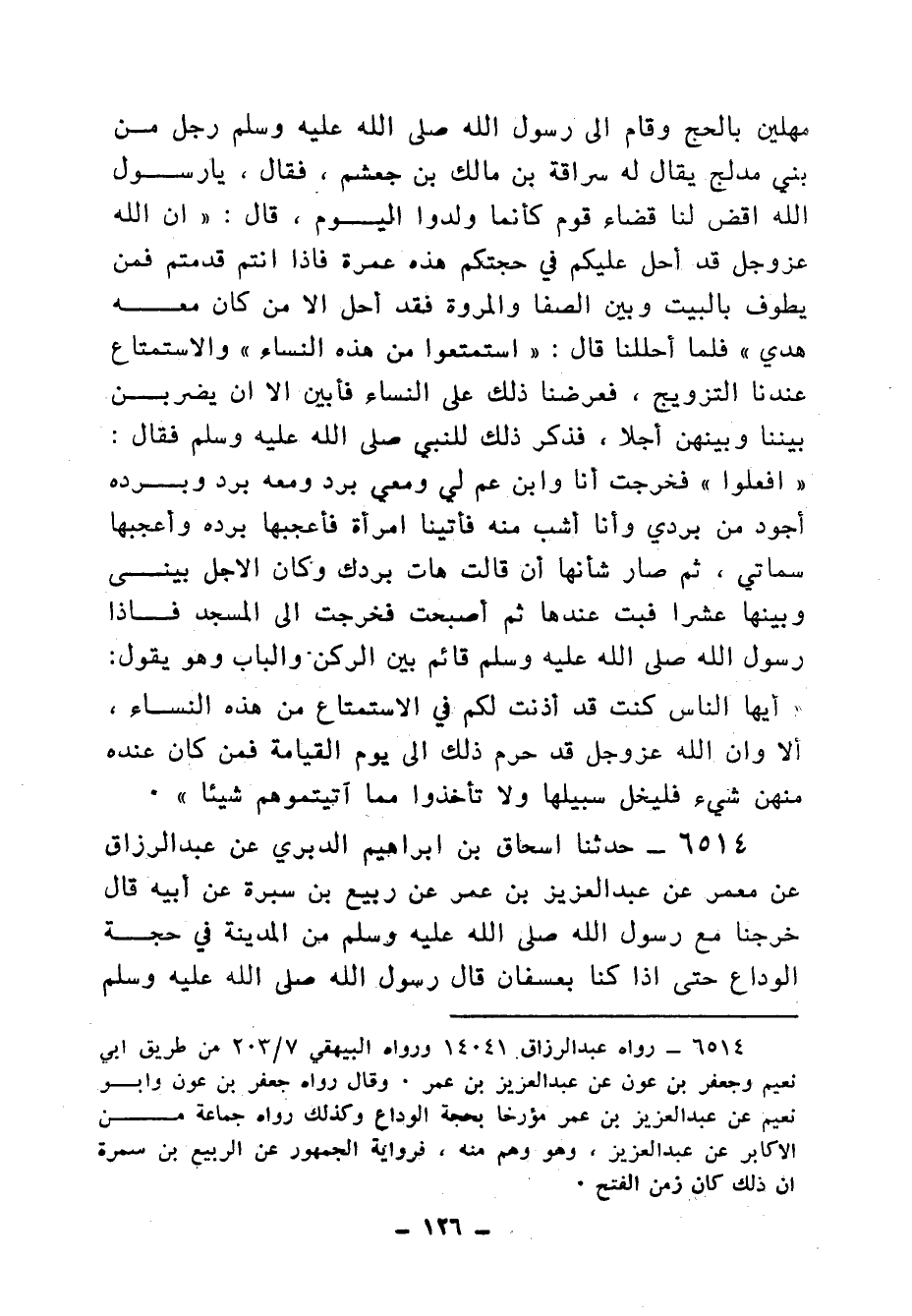 6580 - حَدَّثَنَا مُعَاذُ بْنُ الْمُثَنَّى، ثنا مُسَدَّدٌ، ثنا هُشَيْمٌ، عَنِ الْحَجَّاجِ، عَنْ عَطَاءٍ، عَنْ جَابِرٍ، أَنَّ سُرَاقَةَ بْنَ مَالِكٍ، قَالَ: يَا رَسُولَ اللهِ §عُمْرَتُنَا هِيَ لَنَا خَاصَّةً , أَمْ لِلْأَبَدِ؟ قَالَ: «لَا، بَلْ لِلْأَبَدِ»