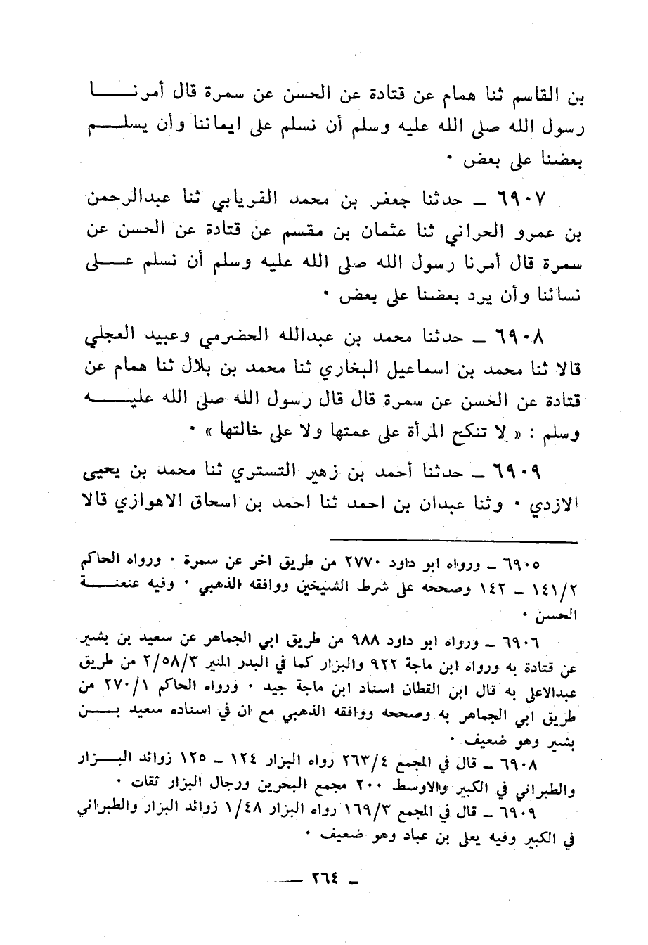 7077 - وَبِإِسْنَادِهِ عَنْ سَمُرَةَ بْنِ جُنْدُبٍ، قَالَ: «إِنَّ رَسُولَ اللهِ صَلَّى اللهُ عَلَيْهِ وَسَلَّمَ كَانَ §يَنْهَى أَحَدَنَا أَنْ يَحُزَّ السَّيْرَ بَيْنَ إِصْبَعَيْهِ» ، فَيَقُولُ: «إِنَّ فِي ذَلِكَ عَيْنَيْنِ اثْنَيْنِ»
