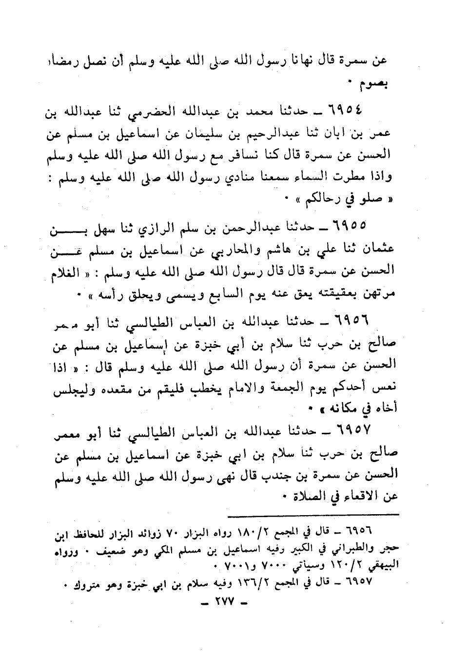 7131 - حَدَّثَنَا مُوسَى بْنُ إِسْحَاقَ، وَالْحُسَيْنُ بْنُ إِسْحَاقَ التُّسْتَرِيُّ، وَعَبْدَانُ بْنُ أَحْمَدَ، قَالُوا: ثنا شَيْبَانُ بْنُ فَرُّوخَ، ثنا سُوَيْدٌ أَبُو حَاتِمٍ، عَنْ قَتَادَةَ، عَنْ أَبِي قِلَابَةَ، عَنْ أَبِي الْأَشْعَثِ، عَنْ شَدَّادِ بْنِ أَوْسٍ، أَنَّ رَسُولَ اللهِ صَلَّى اللهُ عَلَيْهِ وَسَلَّمَ مَرَّ بِرَجُلٍ يَحْتَجِمُ فِي رَمَضَانَ، فَقَالَ: «§أَفْطَرَ الْحَاجِمُ، وَالْمَحْجُومُ»