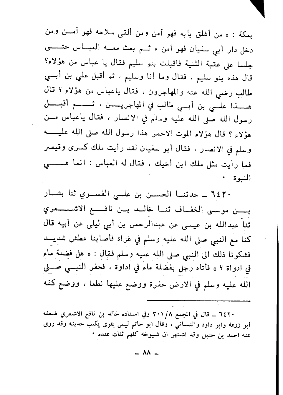 6463 - حَدَّثَنَا مُعَاذُ بْنُ الْمُثَنَّى، ثنا مُسَدَّدٌ، ثنا يَحْيَى بْنُ سَعِيدٍ الْأَنْصَارِيُّ، عَنْ بُشَيْرِ بْنِ يَسَارٍ، عَنْ سُوَيْدِ بْنِ النُّعْمَانِ، قَالَ: كُنَّا مَعَ رَسُولِ اللهِ صَلَّى اللهُ عَلَيْهِ وَسَلَّمَ، فَذَكَرَ نَحْوَهُ