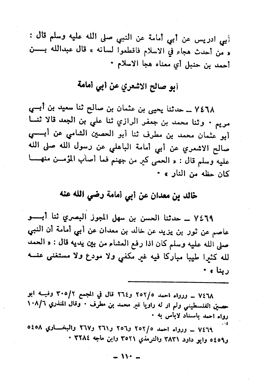 7521 - حَدَّثَنَا مُحَمَّدُ بْنُ السَّرِيِّ بْنِ مِهْرَانَ الدَّقَّاقُ، ثنا الْحَكَمُ بْنُ مُوسَى، ح وحَدَّثَنَا أَحْمَدُ بْنُ النَّضْرِالْعَسْكَرِيُّ، ثنا أَبُو خَيْثَمَةَ مُصْعَبُ بْنُ سَعِيدٍ قَالَا: ثنا بَقِيَّةُ بْنُ الْوَلِيدِ، عَنْ مُحَمَّدِ بْنِ زِيَادٍ، عَنْ أَبِي أُمَامَةَ، عَنِ النَّبِيِّ صَلَّى الله عَلَيْهِ وَسَلَّمْ نَحْوَهُ