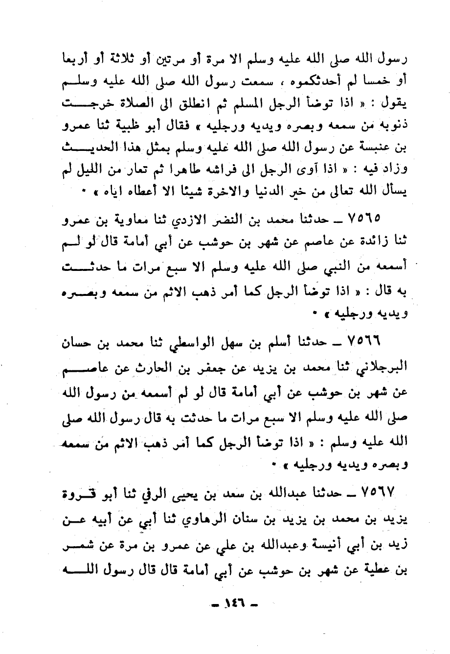 7645 - حَدَّثَنَا يَحْيَى بْنُ عَبْدِ الْبَاقِي الْأَذَنِيُّ، ثنا أَبُو عُمَيْرِ بْنُ النَّحَّاسِ، ثنا ضَمْرَةُ، عَنْ يَحْيَى بْنِ أَبِي عَمْرٍو السَّيْبَانِيِّ، عَنْ عَمْرِو بْنِ عَبْدِ اللهِ الْحَضْرَمِيِّ، عَنْ أَبِي أُمَامَةَ الْبَاهِلِيِّ قَالَ خَطَبَنَا رَسُولُ اللهِ صَلَّى الله عَلَيْهِ وَسَلَّمْ فَذَكَرَ مِثْلَهُ