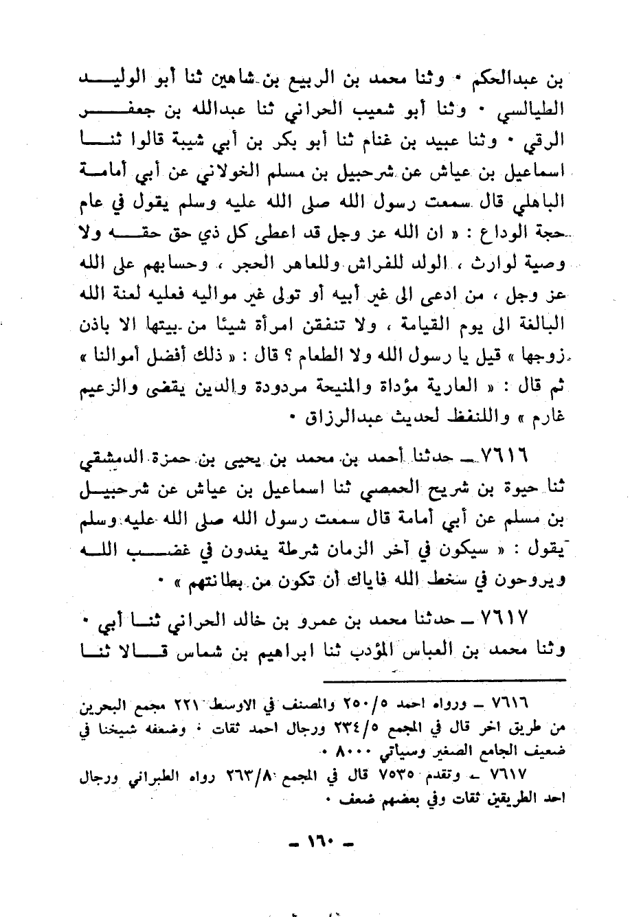7673 - حَدَّثَنَا أَحْمَدُ بْنُ عَبْدِ الْوَهَّابِ بْنِ نَجْدَةَ الْحَوْطِيُّ، ثنا أَبُو الْيَمَانِ، ثنا إِسْمَاعِيلُ بْنُ عَيَّاشٍ، عَنْ صَفْوَانَ بْنِ عَمْرٍو، عَنْ سُلَيْمِ بْنِ عَامِرٍ قَالَ: كُنَّا نَجْلِسُ إِلَى أَبِي أُمَامَةَ الْبَاهِلِيِّ، فَيُحَدِّثُنَا حَدِيثًا كَثِيرًا عَنْ رَسُولِ اللهِ صَلَّى الله عَلَيْهِ وَسَلَّمْ، فَإِذَا سَكَتَ قَالَ: «§أَعَقِلْتُمْ؟ بَلِّغُوا كَمَا بُلِّغْتُمْ»
