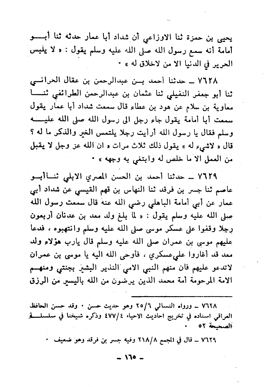 7692 - حَدَّثَنَا أَبُو زَيْدٍ أَحْمَدُ بْنُ يَزِيدَ الْحَوْطِيُّ، ثنا أَبُو الْيَمَانِ الْحَكَمُ بْنُ نَافِعٍ، ثنا عُفَيْرُ بْنُ مَعْدَانَ، عَنْ سُلَيْمِ بْنِ عَامِرٍ، عَنْ أَبِي أُمَامَةَ رَضِيَ اللهُ عَنْهُ أَنَّ رَسُولَ اللهِ صَلَّى الله عَلَيْهِ وَسَلَّمْ، قَالَ: «§خَيْرُ صُفُوفِ الرِّجَالِ أَوَّلُهَا، وَشَرُّ صُفُوفِ الرِّجَالِ آخِرُهَا، وَخَيْرُ صُفُوفِ النِّسَاءِ آخِرُهَا، وَشَرُّ صُفُوفِ النِّسَاءِ أَوَّلُهَا»