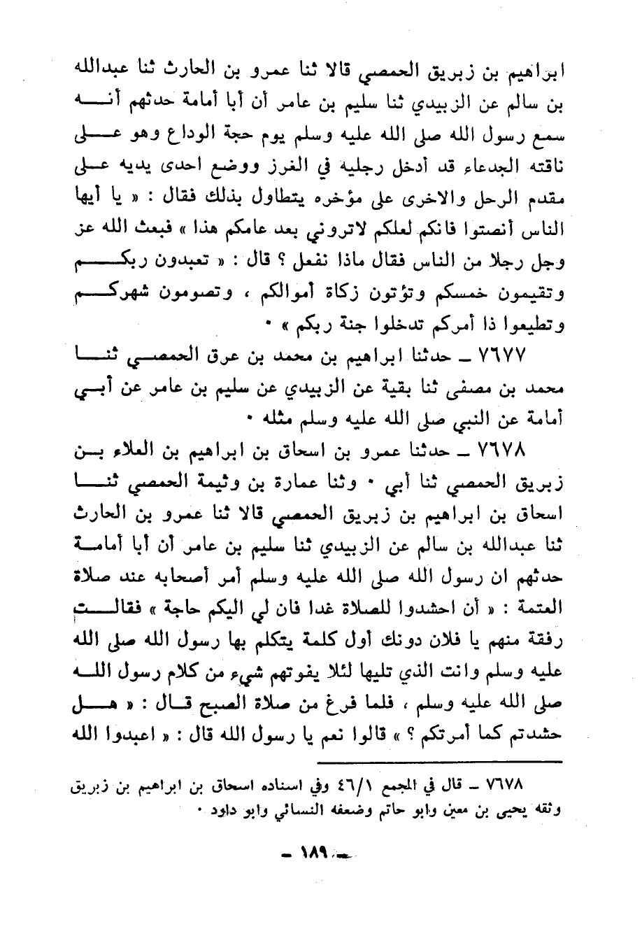 7780 - حَدَّثَنَا أَبُو يَزِيدَ يُوسُفُ بْنُ يَزِيدَ الْقَرَاطِيسِيُّ، ثنا حَجَّاجُ بْنُ إِبْرَاهِيمَ الْأَزْرَقُ، حَدَّثَنَا ابْنُ وَهْبٍ، حَدَّثَنِي مُعَاوِيَةُ بْنُ صَالِحٍ، عَنْ أَبِي عَبْدِ الرَّحْمَنِ، عَنْ أَبِي أُمَامَةَ، أَنَّ رَسُولَ اللهِ صَلَّى اللهُ عَلَيْهِ وَسَلَّمَ قَالَ: " §إِذَا كَانَ يَوْمُ الْقِيَامَةِ قَامَتْ ثُلَّةٌ مِنَ النَّاسِ يَسُدُّونَ الْأُفُقَ، نُورُهُمْ كَالشَّمْسِ فَيُقَالُ: النَّبِيَّ الْأُمِّيَّ، فَيَتَحَسَّسُ لَهَا كُلُّ نَبِيٍّ فَيُقَالُ: مُحَمَّدٌ وَأُمَّتُهُ، ثُمَّ تَقُومُ ثُلَّةٌ أُخْرَى تَسُدُّ مَا بَيْنَ الْأُفُقِ، نُورُهُمْ كَالْقَمَرِ لَيْلَةَ الْبَدْرِ، فَيُقَالُ: النَّبِيَّ الْأُمِّيَّ، فَيَتَحَسَّسُ لَهَا كُلُّ نَبِيٍّ، فَيُقَالُ: مُحَمَّدٌ وَأُمَّتُهُ، ثُمَّ تَقُومُ ثُلَّةٌ أُخْرَى تَسُدُّ مَا بَيْنَ الْأُفُقِ نُورُهُمْ مِثْلُ كَوْكَبٍ فِي السَّمَاءِ، فَيُقَالُ: النَّبِيَّ الْأُمِّيَّ، فَيَتَحَسَّسُ لَهَا كُلُّ نَبِيٍّ، فَيُقَالُ: مُحَمَّدٌ وَأُمَّتُهُ، ثُمَّ يَحْثِي حَثْيَتَيْنِ، فَيَقُولُ: هَذَا لَكَ يَا مُحَمَّدُ، وَهَذَا مِنِّي لَكَ يَا مُحَمَّدُ، ثُمَّ يُوضَعُ الْمِيزَانُ، وَيُؤْخَذُ فِي الْحِسَابِ "