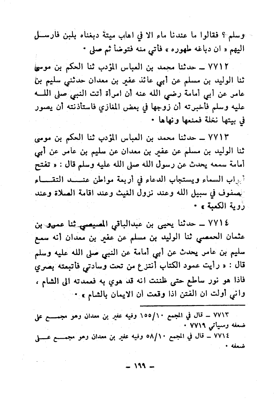 7810 - حَدَّثَنَا الْحُسَيْنُ بْنُ إِسْحَاقَ التُّسْتَرِيُّ، ثنا يَحْيَى الْحِمَّانِيُّ، ثنا أَبُو بَكْرِ بْنِ عَيَّاشٍ، عَنْ أَبِي الْمُهَلَّبِ، عَنْ عُبَيْدِ اللهِ بْنِ زَحْرٍ، عَنْ عَلِيِّ بْنِ يَزِيدَ، عَنِ الْقَاسِمِ، عَنْ أَبِي أُمَامَةَ قَالَ: قَالَ رَسُولُ اللهِ صَلَّى اللهُ عَلَيْهِ وَسَلَّمَ: " إِنَّ §لُقْمَانَ قَالَ لِابْنِهِ: يَا بُنَيَّ عَلَيْكَ بِمَجَالِسِ الْعُلَمَاءِ، وَاسْتَمِعْ كَلَامَ الْحُكَمَاءِ، فَإِنَّ اللهَ يُحْيِي الْقَلْبَ الْمَيِّتَ بِنُورِ الْحِكْمَةِ كَمَا يُحْيِي الْأَرْضَ الْمَيْتَةَ بِوَابِلِ الْمَطَرِ "