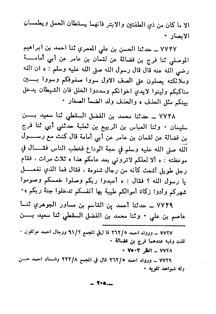7829 - حَدَّثَنَا يَحْيَى بْنُ أَيُّوبَ، ثنا سَعِيدُ بْنُ أَبِي مَرْيَمَ، أنا يَحْيَى بْنُ أَيُّوبَ، عَنْ عُبَيْدِ اللهِ بْنِ زَحْرٍ، عَنْ عَلِيِّ بْنِ يَزِيدَ، عَنِ الْقَاسِمِ، عَنْ أَبِي أُمَامَةَ أَنَّ رَسُولَ اللهِ صَلَّى اللهُ عَلَيْهِ وَسَلَّمَ، قَالَ: «إِنَّ §أَغْبَطَ النَّاسِ عِنْدِي مُؤْمِنٌ خَفِيفُ الْحَالِ، أَوِ الْحَاذِ ذُو حَظٍّ مِنَ الصَّلَاةِ، وَأَحْسَنَ عِبَادَةَ رَبِّهِ وَأَطَاعَهُ فِي السِّرِّ، وَكَانَ غَامِضًا فِي النَّاسِ، لَا يُشَارُ إِلَيْهِ بِالْأَصَابِعِ ذُو كَفَافٍ وَصَبْرٍ عَلَى ذَلِكَ» ، ثُمَّ نَقَدَ بِيَدِهِ، فَقَالَ: «عَجَلَتْ مَنِيَّتُهُ، وَقَلَّتْ بَوَاكِيهِ، وَقَلَّ تُرَاثُهُ»