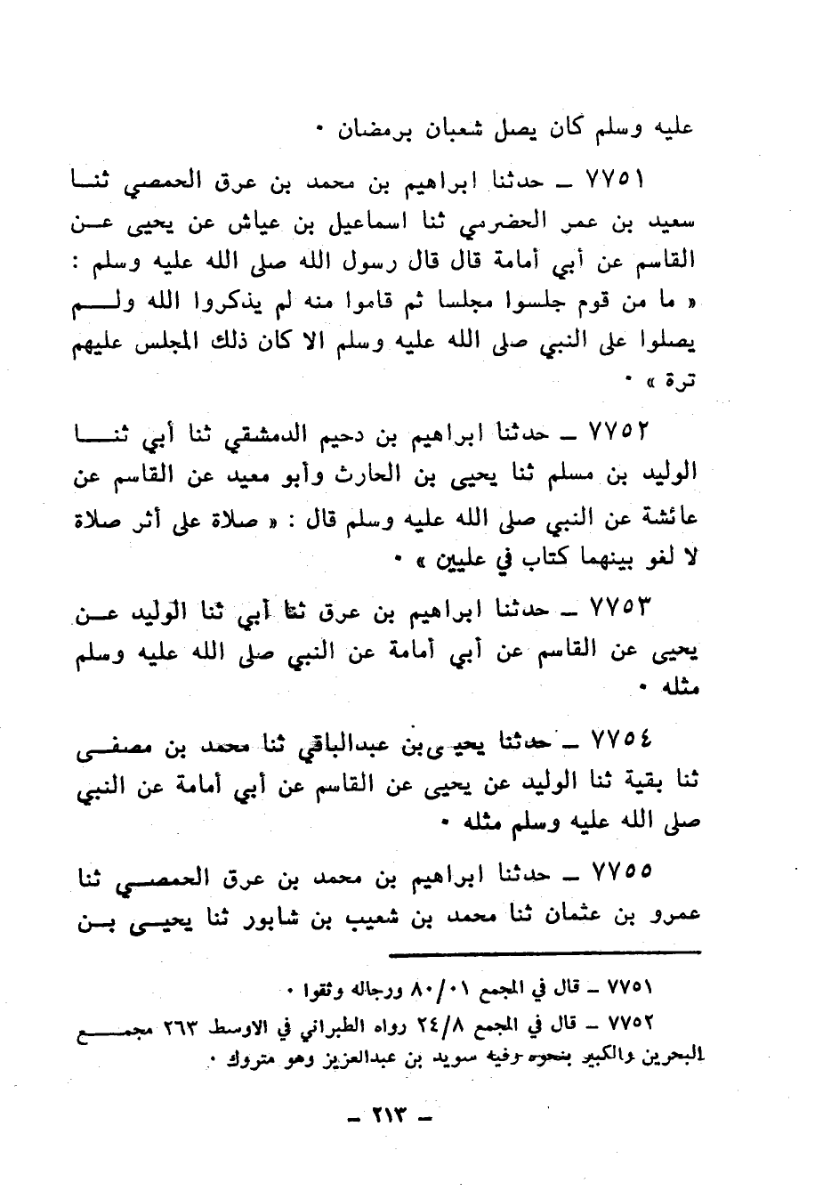 7858 - حَدَّثَنَا مُحَمَّدُ بْنُ عَمْرِو بْنِ خَالِدٍ الْحَرَّانِيُّ، ثنا أَبِي، ثنا بَكْرُ بْنُ مُضَرٍ، عَنْ عُبَيْدِ اللهِ بْنِ زَحْرٍ، عَنْ عَلِيِّ بْنِ يَزِيدَ، عَنِ الْقَاسِمِ، عَنْ أَبِي أُمَامَةَ رَفَعَ الْحَدِيثَ قَالَ: «§مَنْ بَدَأَ بِالسَّلَامِ، فَهُوَ أَوْلَى بِاللهِ وَرَسُولِهِ»
