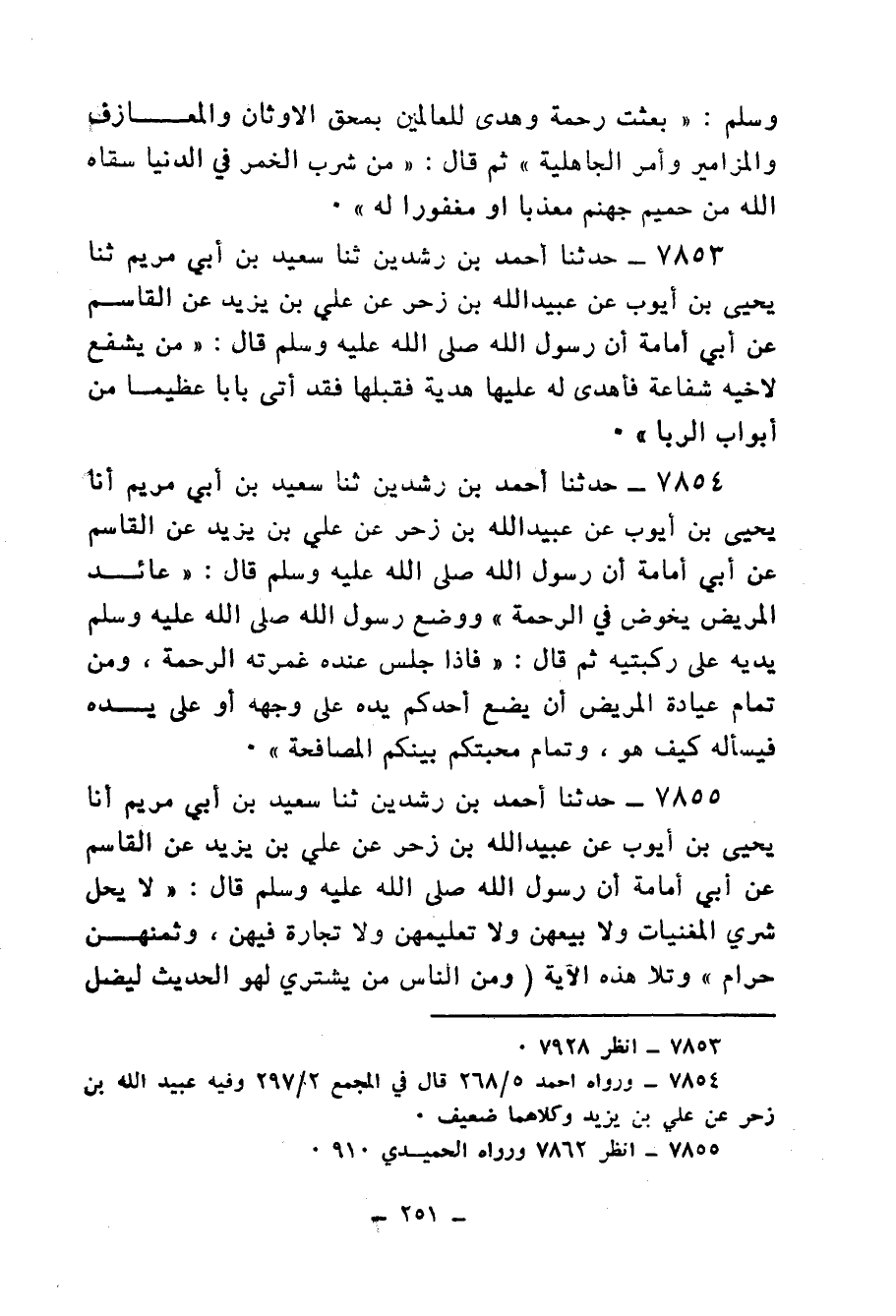 7983 - حَدَّثَنَا أَبُو يَزِيدَ الْقَرَاطِيسِيُّ، ثنا عَلِيُّ بْنُ يَزِيدَ، ثنا عُبَيْدُ اللهِ بْنُ عَمْرٍو، عَنْ زَيْدِ بْنِ أَبِي أُنَيْسَةَ، عَنْ عَمْرِو بْنِ مُرَّةَ، عَنْ سَالِمِ بْنِ أَبِي الْجَعْدِ، عَنْ أَبِي أُمَامَةَ الْبَاهِلِيِّ قَالَ: قَالَ رَسُولُ اللهِ صَلَّى اللهُ عَلَيْهِ وَسَلَّمَ: «§إِذَا مَضْمَضَ أَحَدُكُمْ فَاهُ، حُطَّ مَا أَصَابَ بِفِيهِ، وَإِذَا غَسَلَ وَجْهَهُ حُطَّ مَا أَصَابَ وَجْهُهُ، وَإِذَا غَسَلَ يَدَيْهِ حُطَّ مَا أَصَابَ بِيَدِهِ، وَإِذَا غَسَلَ رِجْلَيْهِ حُطَّ مَا أَصَابَ بِرِجْلَيْهِ» فَقَالَ رَجُلٌ عِنْدَ ذَلِكَ: انْظُرْ مَا تُحَدِّثُ يَا أَبَا أُمَامَةَ صَحِبْنَا رَسُولَ اللهِ صَلَّى اللهُ عَلَيْهِ وَسَلَّمَ، فَمَا سَمِعْنَاهُ يَقُولُ مَا تَقُولُ، فَقَالَ أَبُو أُمَامَةَ: «لَوْ لَمْ أَسْمَعْهُ إِلَّا مَرَّةً أَوْ مَرَّتَيْنِ لَمْ أُحَدِّثْ بِهِ»