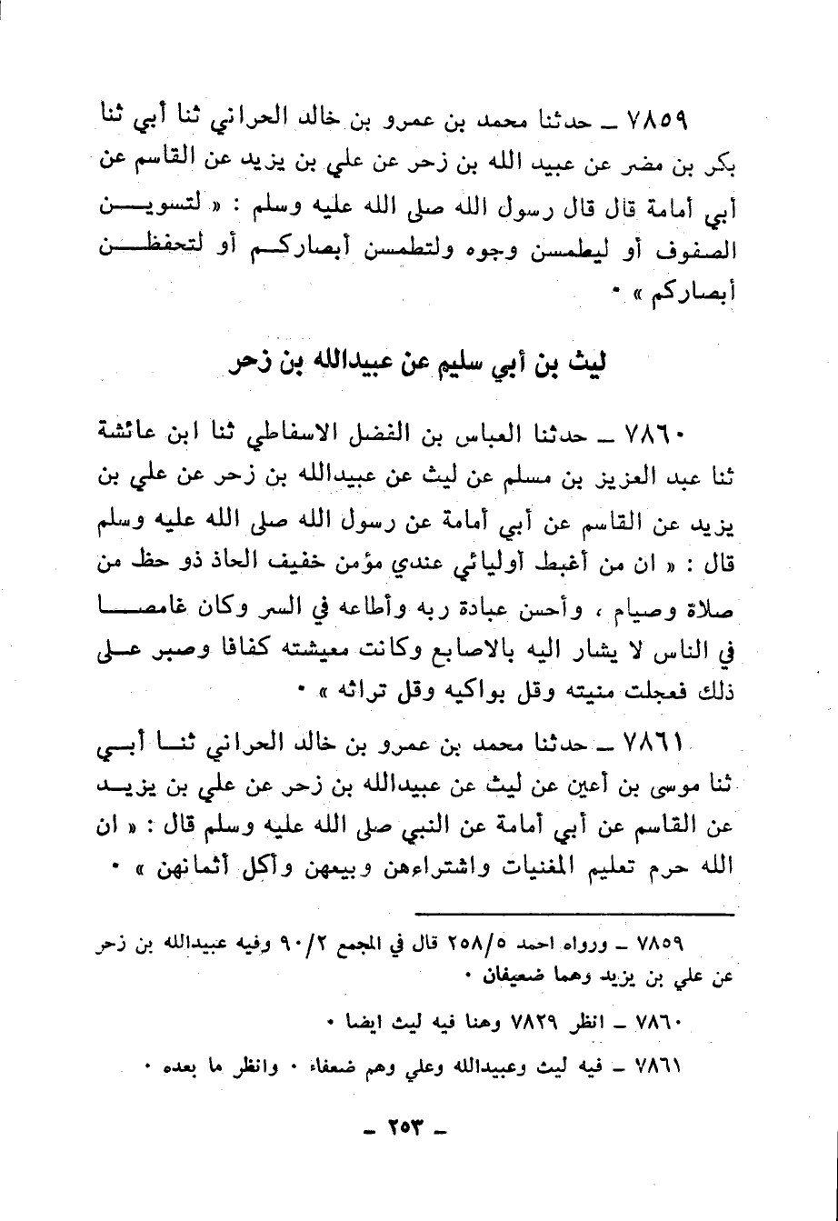 7987 - حَدَّثَنَا عَبْدُ اللهِ بْنُ أَحْمَدَ بْنِ حَنْبَلٍ، حَدَّثَنِي مُحَمَّدُ بْنُ خَالِدِ بْنِ عَبْدِ اللهِ الْوَاسِطِيُّ، ثنا أَبِي، عَنْ حُصَيْنٍ، عَنْ سَالِمِ بْنِ أَبِي الْجَعْدِ، عَنْ أَبِي أُمَامَةَ رَضِيَ اللهُ عَنْهُ، عَنِ النَّبِيِّ صَلَّى اللهُ عَلَيْهِ وَسَلَّمَ، أَنَّهُ قَالَ: «§الْحَمْدُ لِلَّهِ عَدَدَ مَا خَلَقَ اللهُ، وَالْحَمْدُ لِلَّهِ عَدَدَ مَا أَحْصَى كِتَابُهُ، وَالْحَمْدُ لِلَّهِ عَدَدَ كُلِّ شَيْءٍ، وَالْحَمْدُ لِلَّهِ عَلَى كُلِّ شَيْءٍ، وَسُبْحَانَ اللهِ عَلَى كُلِّ شَيْءٍ، وَسُبْحَانَ اللهِ عَدَدَ كُلِّ شَيْءٍ»