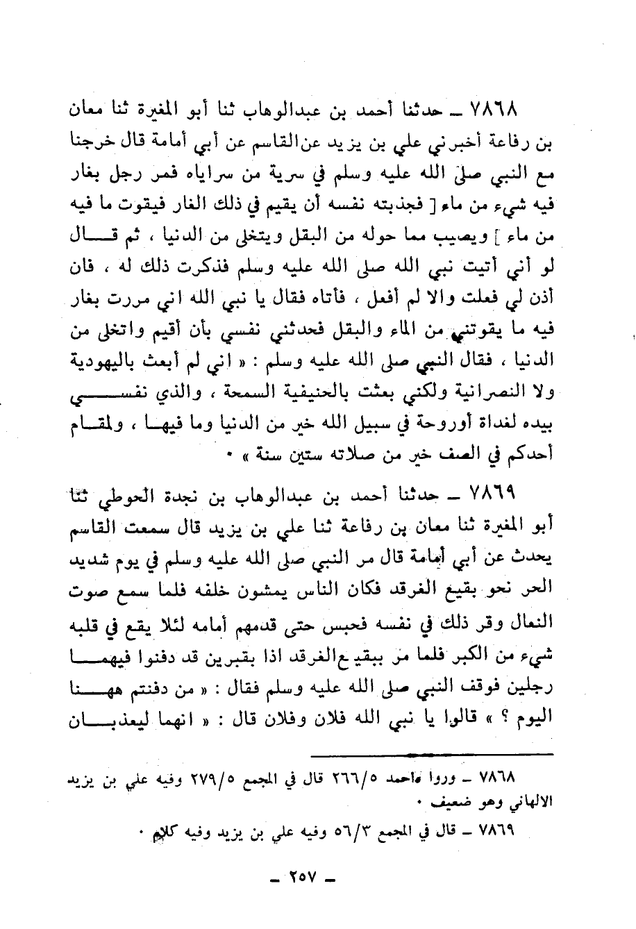 8001 - حَدَّثَنَا يُوسُفُ الْقَاضِي، ثنا مُسَدَّدٌ، ثنا يَزِيدُ بْنُ زُرَيْعٍ، ثنا سُلَيْمَانُ التَّيْمِيُّ، عَنْ سَيَّارٍ، عَنْ أَبِي أُمَامَةَ قَالَ: قَالَ رَسُولُ اللهِ صَلَّى اللهُ عَلَيْهِ وَسَلَّمَ: " إِنَّ §اللهَ عَزَّ وَجَلَّ فَضَّلَنِي عَلَى الْأَنْبِيَاءِ - أَوْ قَالَ أُمَّتِي عَلَى الْأُمَمِ - بِأَرْبَعٍ: أَرْسَلَنِي إِلَى النَّاسِ كَافَّةً، وَجَعَلَ الْأَرْضَ كُلَّهَا لِي وَلِأُمَّتِي طَهُورًا وَمَسْجِدًا، فَأَيْنَمَا أَدْرَكَ رَجُلٌ مِنْ أُمَّتِي الصَّلَاةَ، فَعِنْدَهُ مَسْجِدُهُ، وَعِنْدَهُ طَهُورُهُ، وَنُصِرْتُ بِالرُّعْبِ مَسِيرَةَ شَهْرٍ، وَأُحِلَّ لِيَ الْغَنَائِمُ "