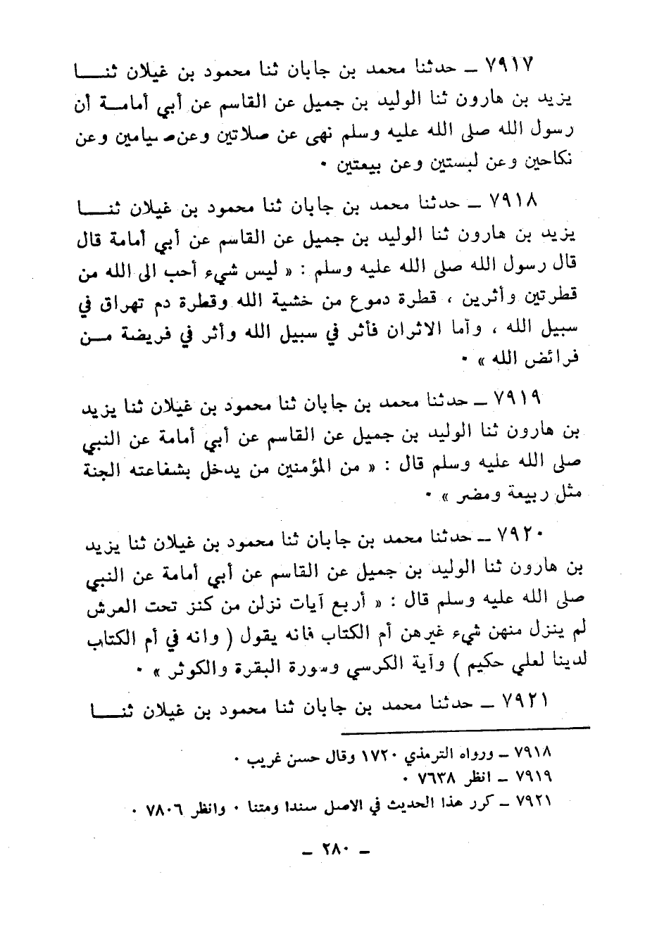 8075 - حَدَّثَنَا الْمِقْدَامُ بْنُ دَاوُدَ، ثنا أَسَدُ بْنُ مُوسَى، ثنا آدَمُ بْنُ الْحَكَمِ، ح وَحَدَّثَنَا مُحَمَّدُ بْنُ صَالِحِ بْنِ الْوَلِيدِ النَّرْسِيِّ، ثنا عَبْدُ الْوَارِثِ بْنُ عَبْدِ الصَّمَدِ بْنِ عَبْدِ الْوَارِثِ، ثنا أَبِي، ثنا آدَمُ بْنُ الْحَكَمِ، ثنا أَبُو غَالِبٍ، عَنْ أَبِي أُمَامَةَ رَضِيَ اللهُ عَنْهُ قَالَ: قَالَ رَسُولُ اللهِ صَلَّى اللهُ عَلَيْهِ وَسَلَّمَ: " §مَنْ قَالَ فِي دُبُرِ صَلَاةِ الْغَدَاةِ: لَا إِلَهَ إِلَّا اللهُ، وَحْدَهُ لَا شَرِيكَ لَهُ، لَهُ الْمُلْكُ، وَلَهُ الْحَمْدُ، يُحْيِي وَيُمِيتُ بِيَدِهِ الْخَيْرُ، وَهُوَ عَلَى كُلِّ شَيْءٍ قَدْيرٌ مِائَةَ مَرَّةٍ قَبْلَ أَنْ يَثْنِيَ رِجْلَيْهِ، كَانَ يَوْمَئِذٍ أَفْضَلَ أَهْلِ الْأَرْضِ إِلَّا مَنْ قَالَ مِثْلَ مَا قَالَ أَوْ زَادَ عَلَى مَا قَالَ "