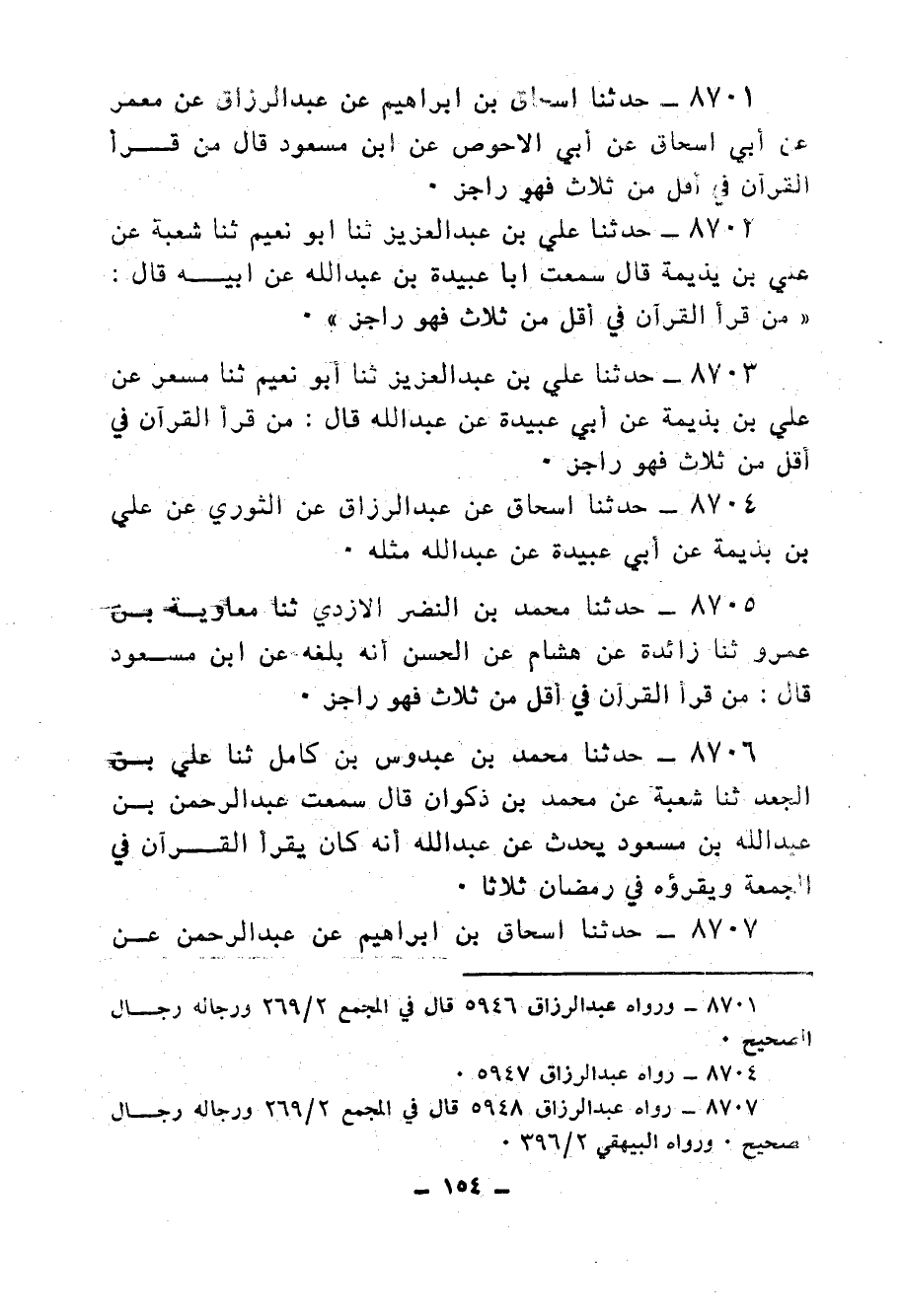 8773 - حَدَّثَنَا مُحَمَّدُ بْنُ النَّضْرِ الْأَزْدِيُّ، ثنا مُعَاوِيَةُ بْنُ عَمْرٍو، ثنا زَائِدَةُ، عَنِ الْأَعْمَشِ، عَنْ خَيْثَمَةَ، قَالَ: قَالَ عَبْدُ اللهِ لِامْرَأَتِهِ: «الْيَوْمَ خَيْرٌ أَمْ أَمْسِ؟» فَقَالَتْ: لَا أَدْرِي، فَقَالَ: «لَكِنِّي أَدْرِي، §أَمْسِ خَيْرٌ مِنَ الْيَوْمِ، وَالْيَوْمُ خَيْرٌ مِنْ غَدٍ، وَكَذَلِكَ حَتَّى تَقُومَ السَّاعَةُ»