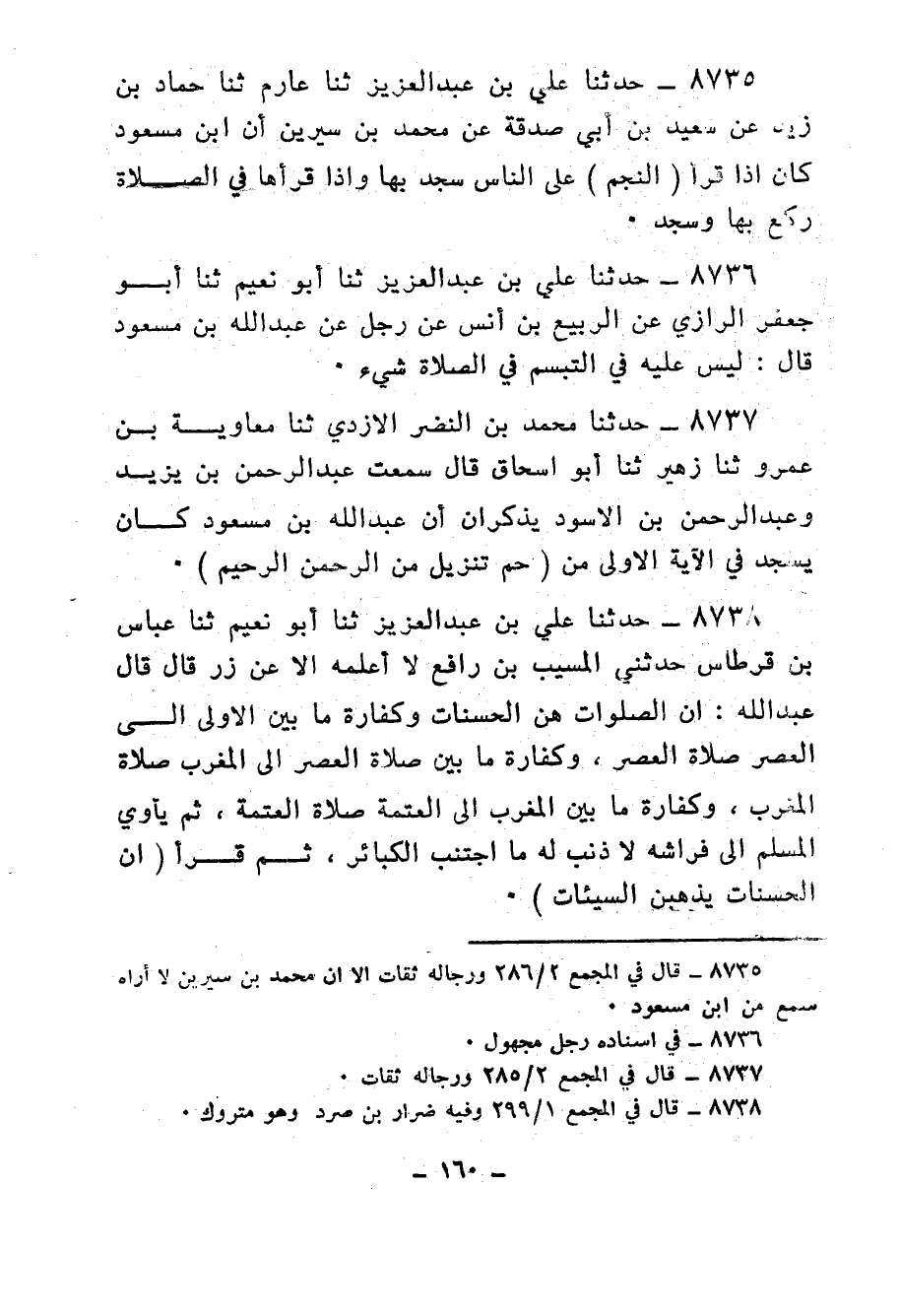 8800 - حَدَّثَنَا عَلِيُّ بْنُ عَبْدِ الْعَزِيزِ، ثنا الْمَسْعُودِيُّ، عَنِ الْقَاسِمِ، قَالَ: قَالَ عَبْدُ اللهِ: " §ثَلَاثٌ أَحْلِفُ عَلَيْهِنَّ، وَالرَّابِعَةُ لَوْ حَلَفْتُ عَلَيْهَا رَجَوْتُ أَنْ لَا آثَمَ، وَلَبَرَرْتُ: أَنْ لَا يَجْعَلَ اللهُ ذَا سَهْمٍ فِي السَّلَامِ كَمَنْ لَا سَهْمَ لَهُ، وَلَا يَتَوَلَّى اللهَ عَبْدٌ مُسْلِمٌ فَيُوَلِّيَهُ سِوَاهُ يَوْمَ الْقِيَامَةِ، وَلَا يُحِبُّ رَجُلٌ قَوْمًا إِلَّا بَعَثَهُ اللهُ مَعَهُمْ، وَأَسْهُمُ الْإِسْلَامِ ثَلَاثَةٌ: الصَّلَاةُ، وَالزَّكَاةُ، وَالصِّيَامُ، وَالرَّابِعَةُ لَوْ حَلَفْتُ عَلَيْهَا لَرَجَوْتُ أَنْ لَا آثَمَ: لَا يَسْتُرُ اللهُ عَلَى عَبْدٍ فِي الدُّنْيَا إِلَّا سَتَرَ اللهُ عَلَيْهِ فِي الْآخِرَةِ "
